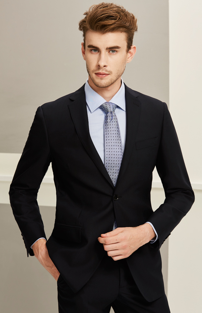 藏蓝色两粒扣单开衩羊毛(100%)贡丝锦春秋商务西装上衣