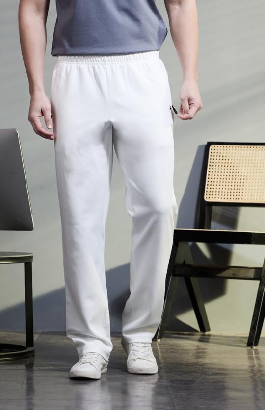 定制运动装-白色38%莫代尔棉混纺散口春夏运动裤子