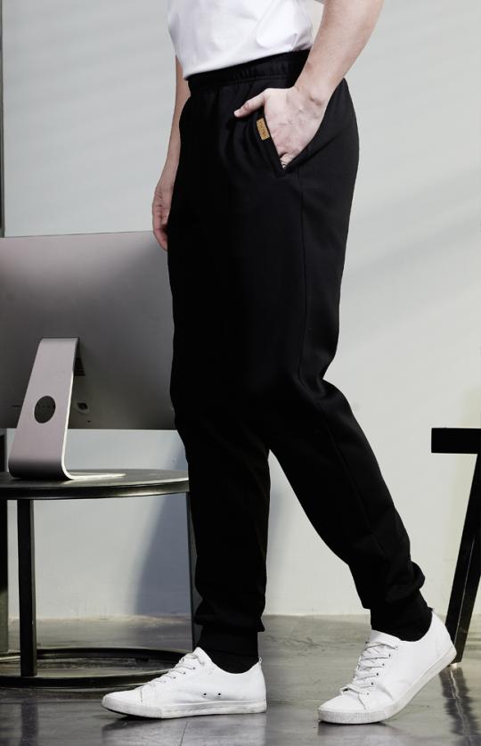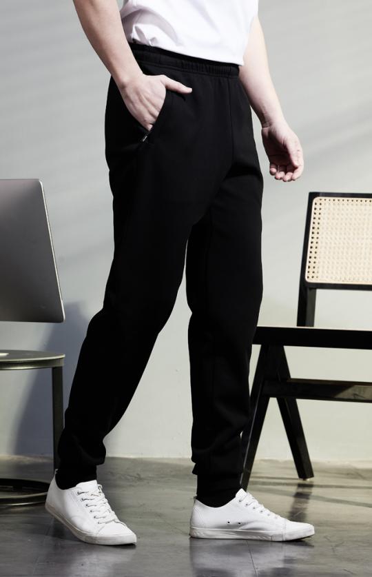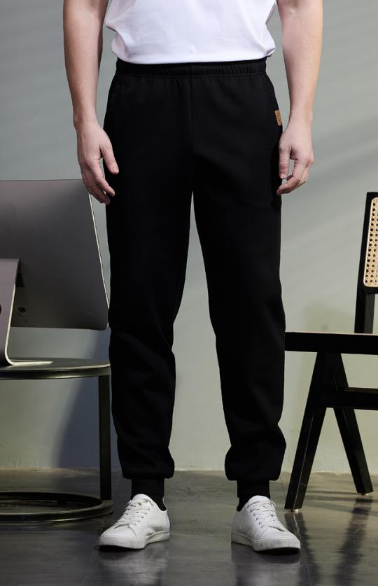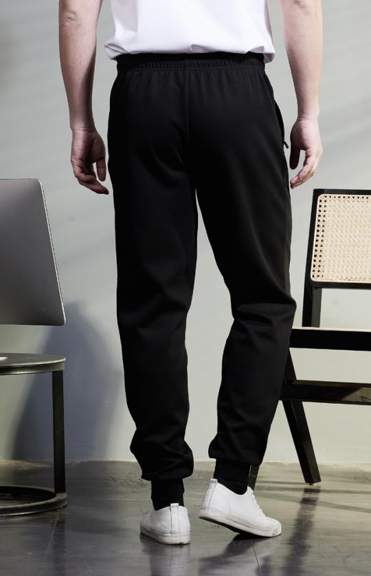 定制运动装-黑色38%莫代尔棉混纺春夏束口运动裤