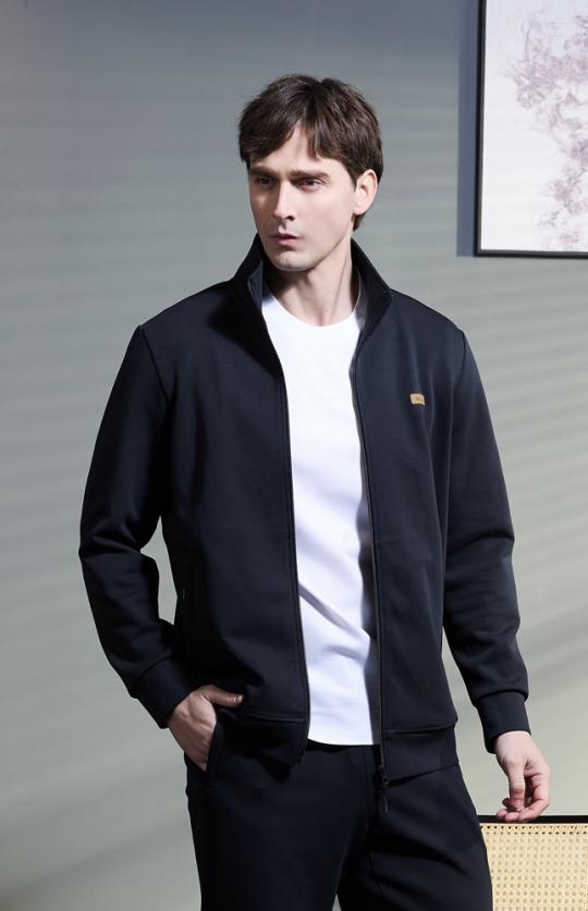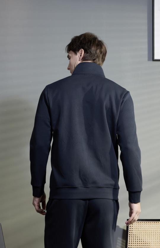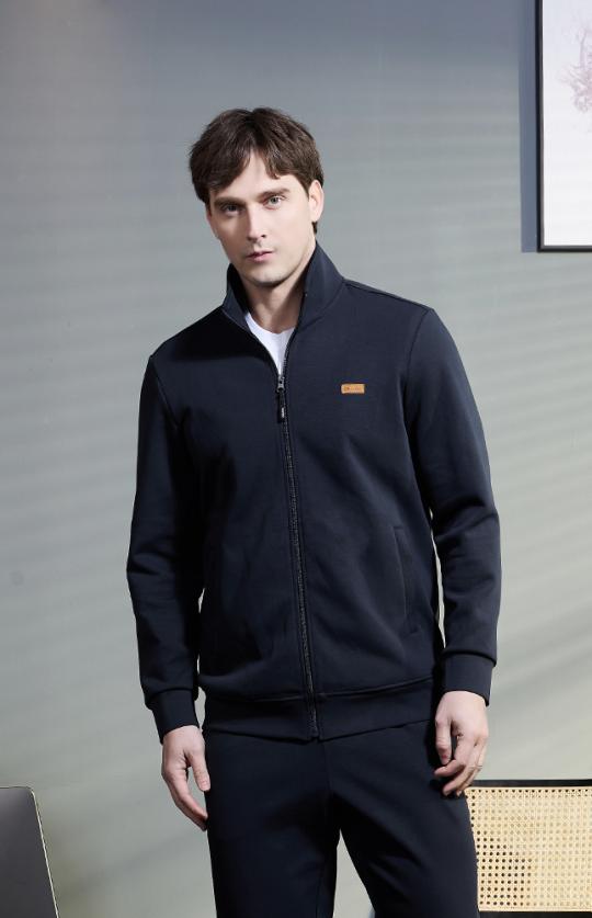 定制运动装-藏蓝色62%粘胶锦纶混纺高弹春夏立翻领运动上衣