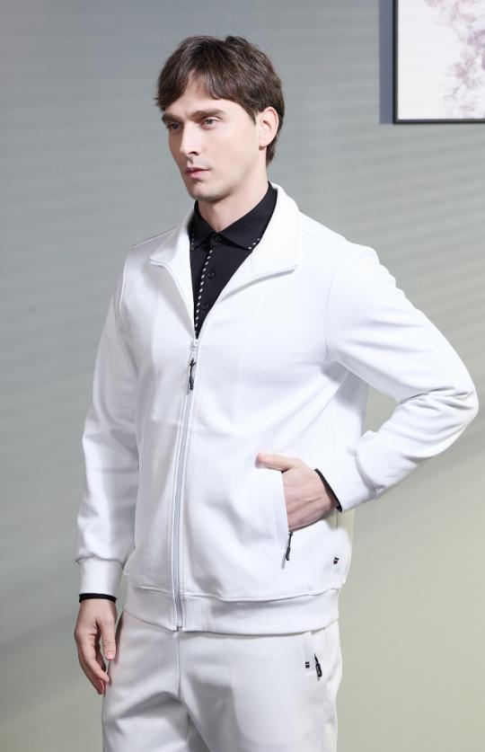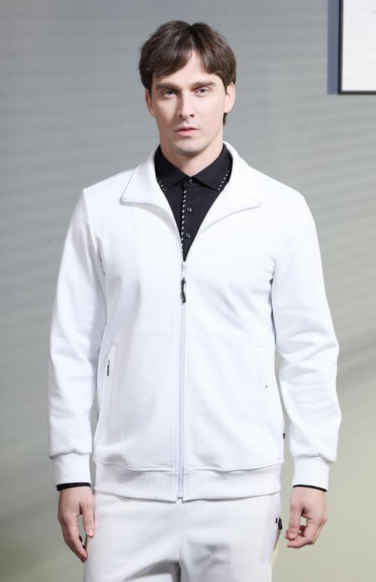 定制运动装-白色38%莫代尔棉混纺立翻领春夏运动装上衣