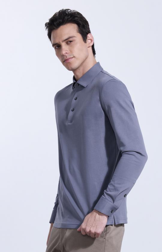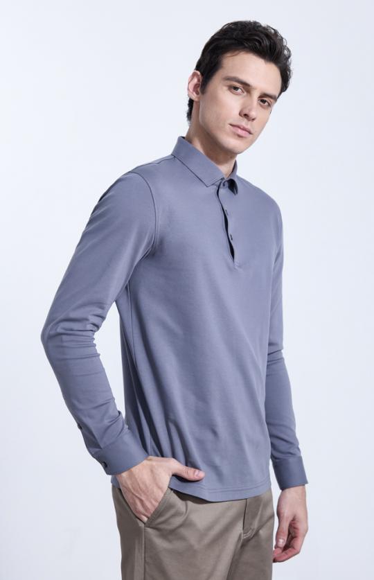 藏蓝色棉聚酯纤维混纺长袖polo衫 NXX11-23003