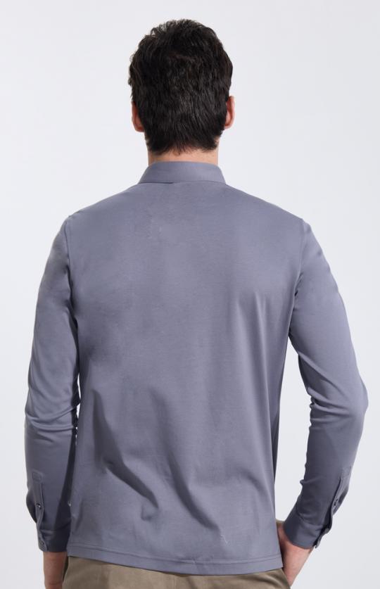 绿色棉聚酯纤维混纺长袖polo衫 NXX11-23004
