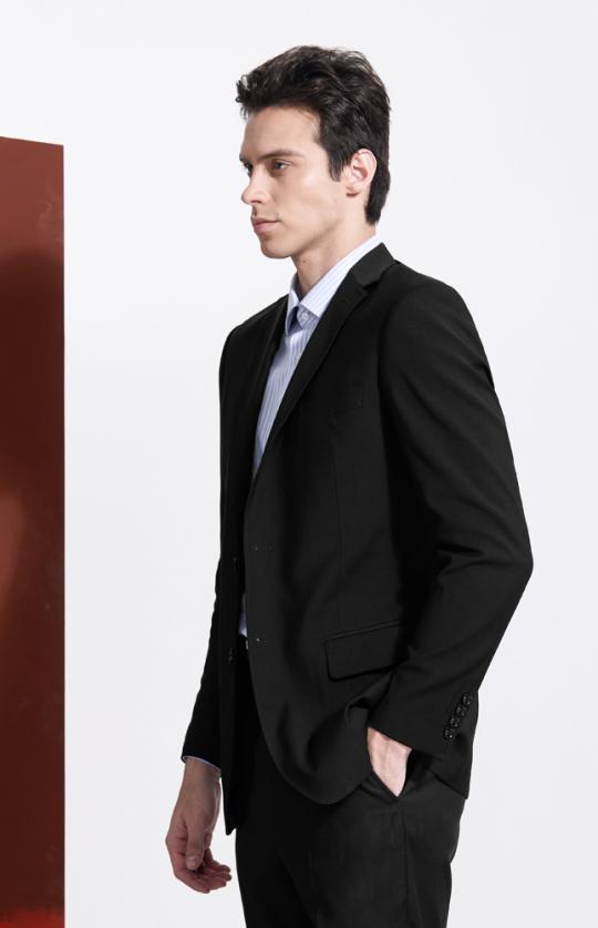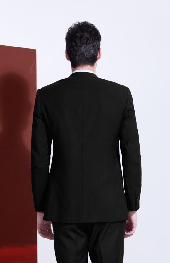 定制西装-黑色65%涤粘胶混纺平驳头两粒扣无开衩商务西装上衣
