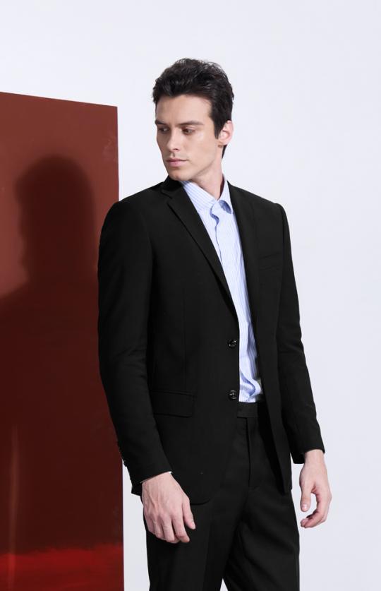 藏青色两粒扣无开衩精纺斜纹弹力平驳领商务西装上衣 NXZS0-24016