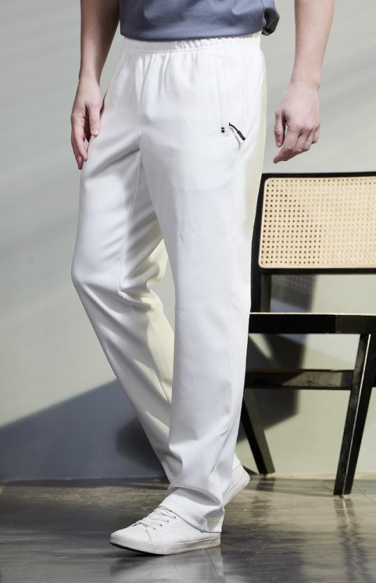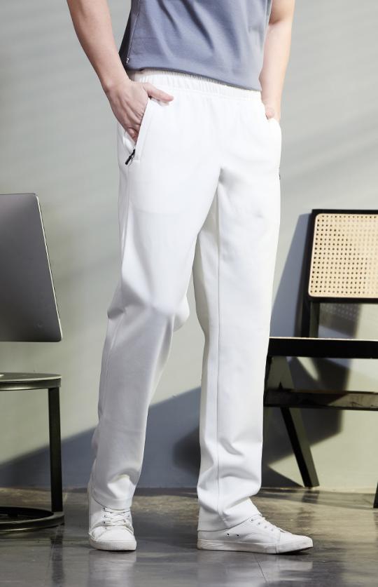 定制运动装-白色38%莫代尔棉混纺散口春夏运动裤子