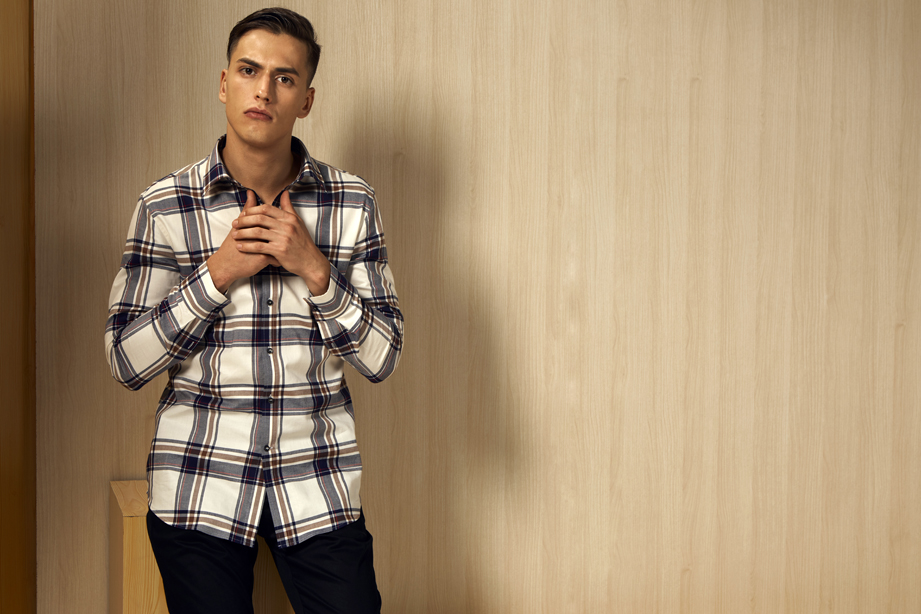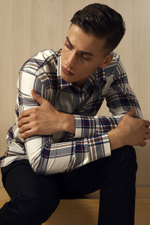 | 款名: | 白底棕蓝红格纹纯棉长袖衬衫 | |||||