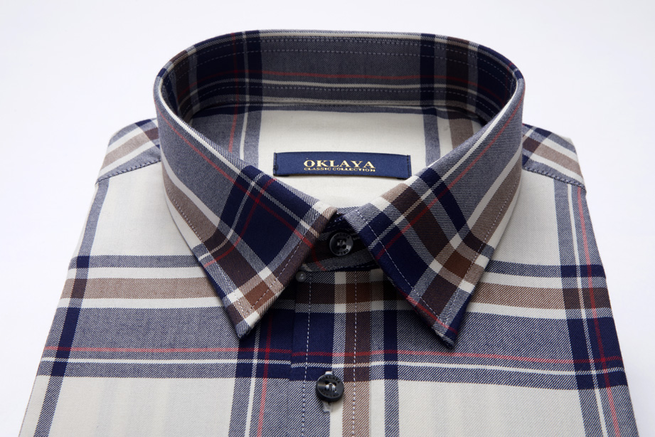 | 款名: | 白底棕蓝红格纯棉长袖衬衫 | |||