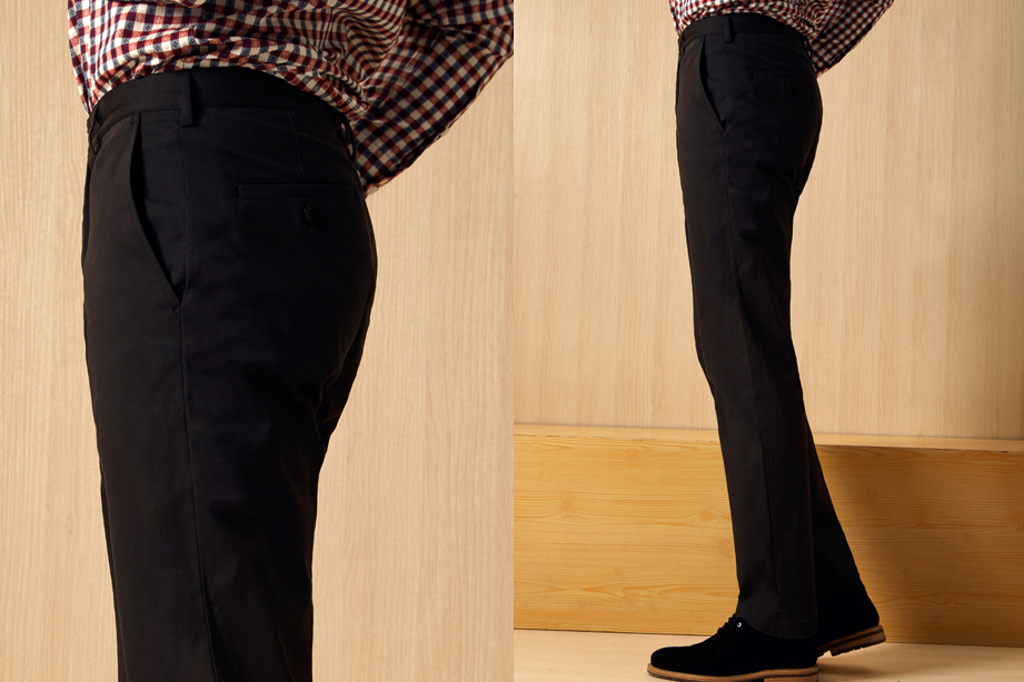 舒适利落的直筒裤口设计,包边处理平整,做工无可挑剔。