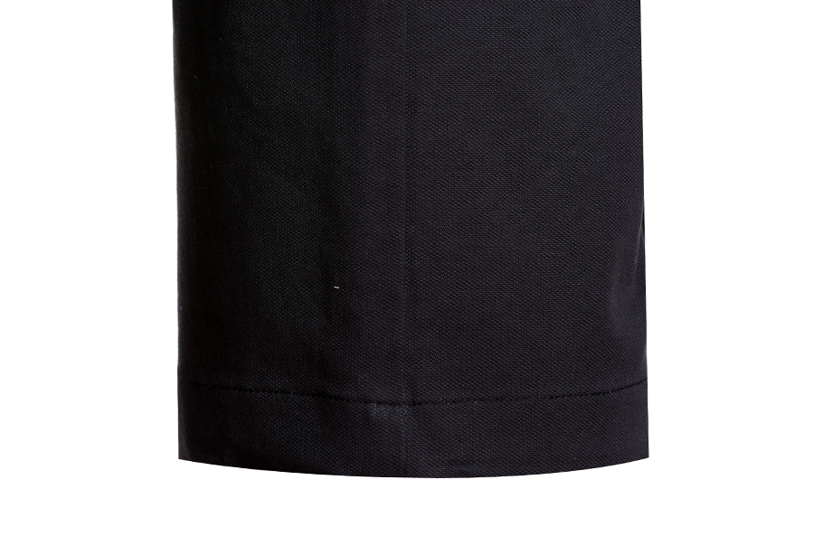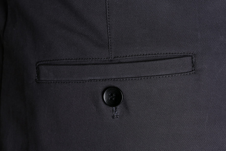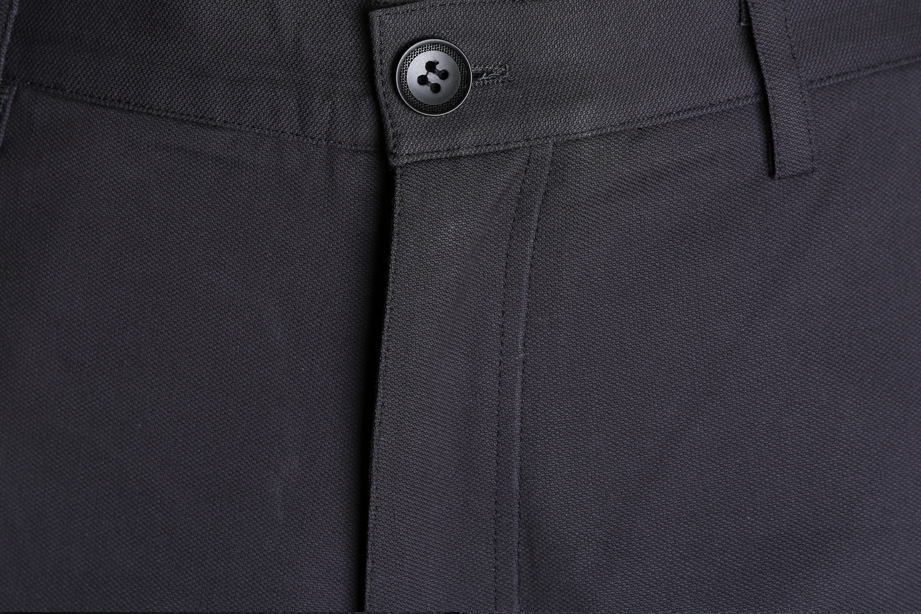 经典腰头设计,平整有型;圆润富有光泽的树脂纽扣,精致美观,十字走线防脱落。
