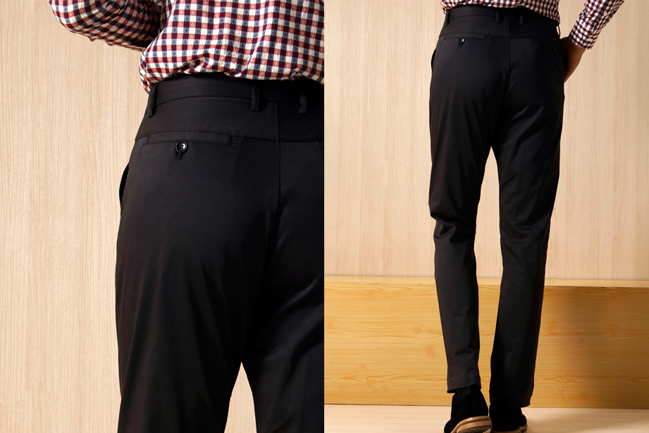 平整精细后单开线口袋,简洁干练。后臀部育克分割处理,穿着更舒适。