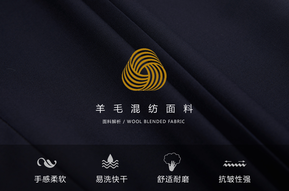 采用纯正羊毛与纤维混纺,手感柔滑,柔软、细腻、富有弹性,保暖效果好;色泽自然柔和,抗皱回弹率高,能迅速恢复原状,舒适耐磨易打理。