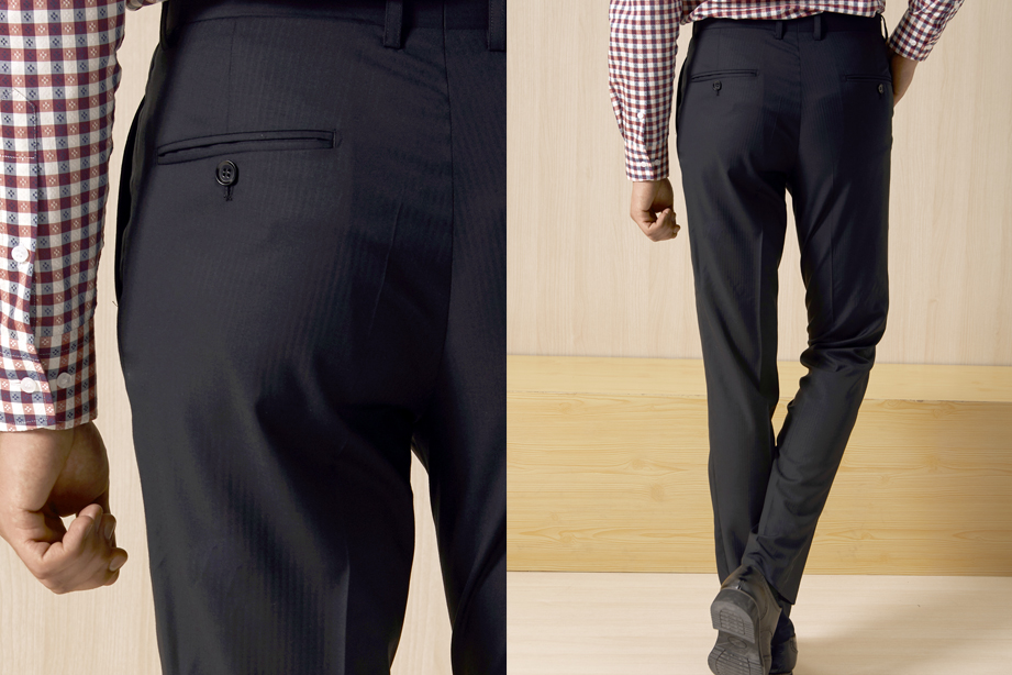 平整精细后双开线口袋,一次开机形成上下唇精美纹和,简约大气。