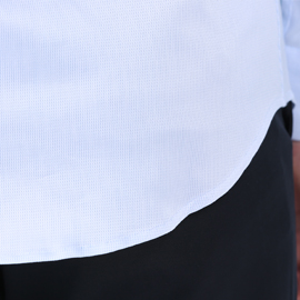 筒形弧边钝角袖头,时尚高雅,精细的车工和高新技术的裁剪;横排双扣,让您的双手拥有更大的自由空间。
