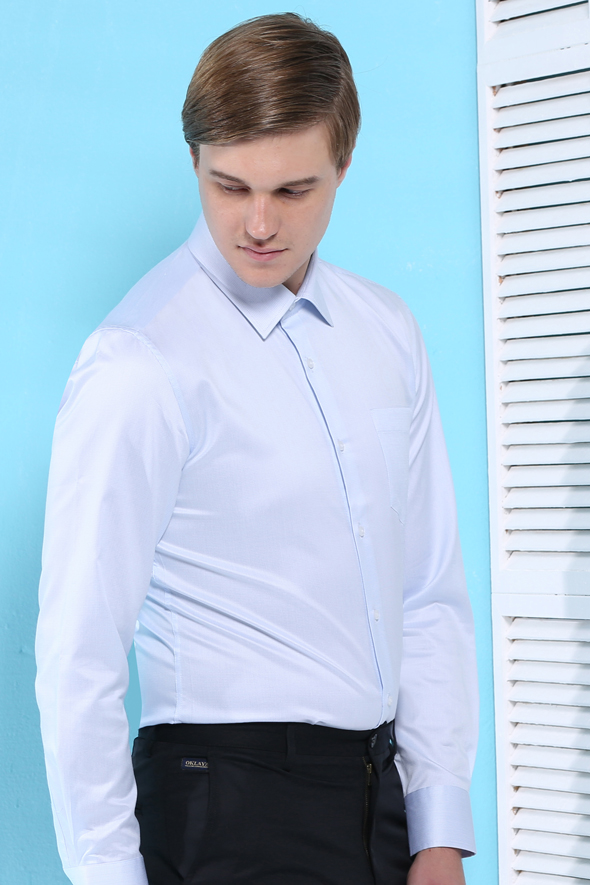 | 款名: | 浅蓝色细条纹纯棉商务尖领衬衫 | |||