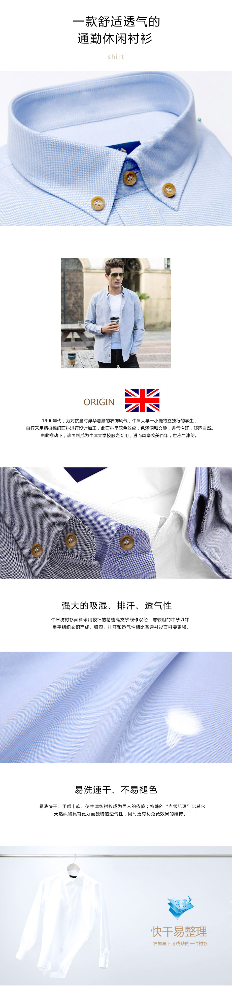 经典的扣式领,永不过时,商务休闲均可,穿着更随意百搭; 采用德国骏马内衬,更加力挺耐穿,多次洗涤仍然能保持原型。