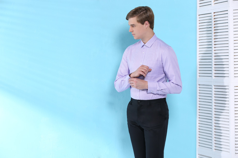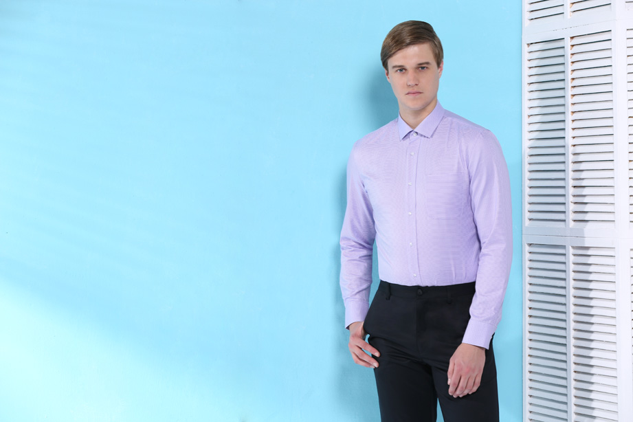 | 款名: | 浅紫色鸟眼纹纯棉免烫商务小方领衬衫 | |||