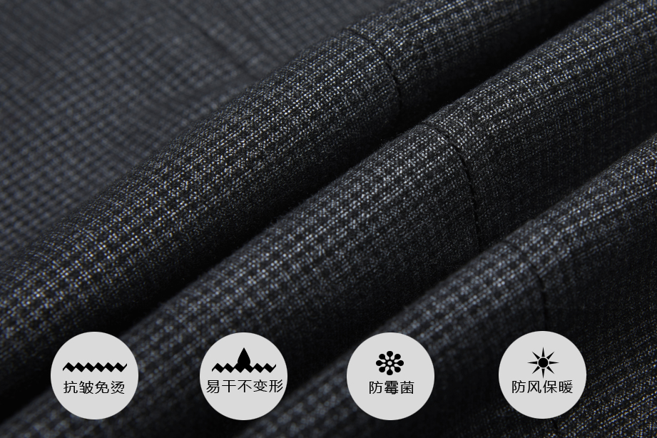 涤纶面料柔软细腻,仿毛质感具有光泽,具有较高的强度与弹性恢复能力。因此,其坚牢耐用、抗皱免烫。 洗后极易干燥,不变形,有良好的洗可穿性能。 耐酸碱,同时不怕霉菌,不怕虫蛀。