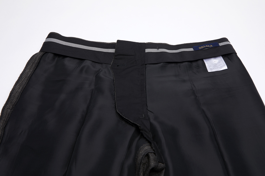 平整的腰里,包缝线均匀细致,完美衔接。
