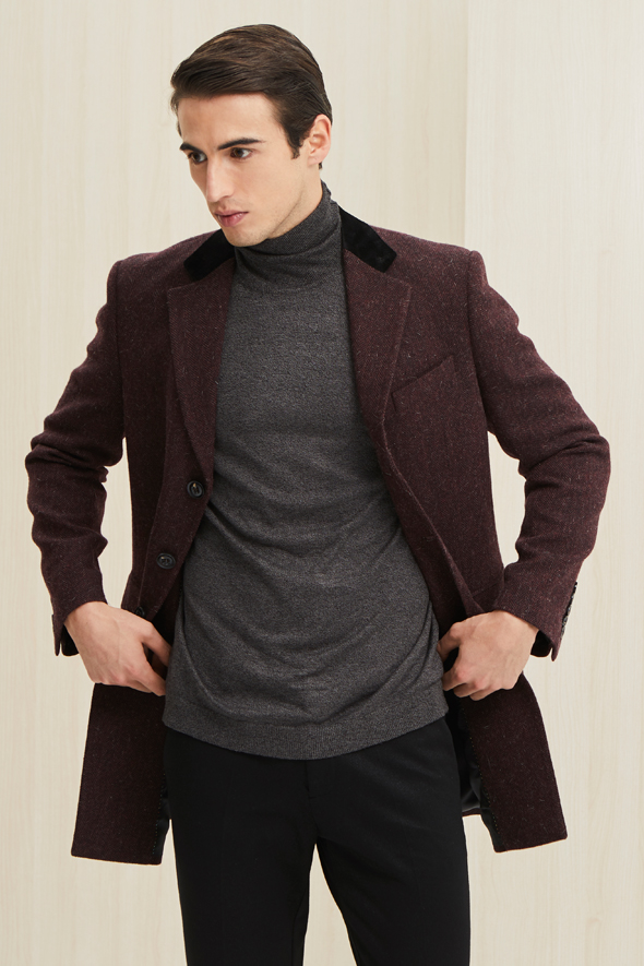 | 款名: | 枣红色人字毛毡呢时尚拼接领休闲大衣(注:毡毛工艺) | |||
