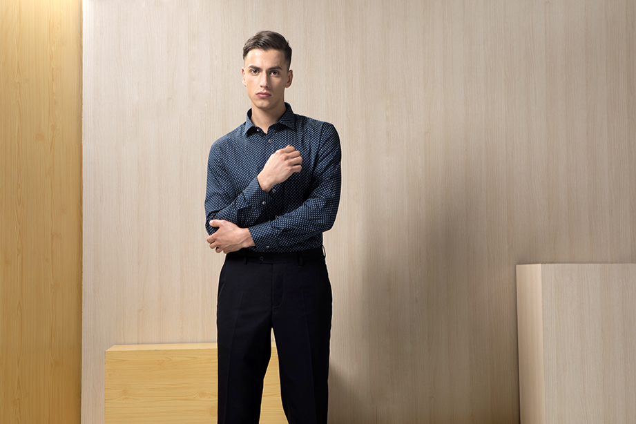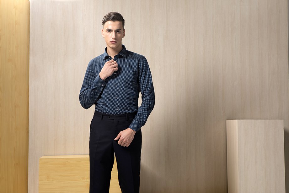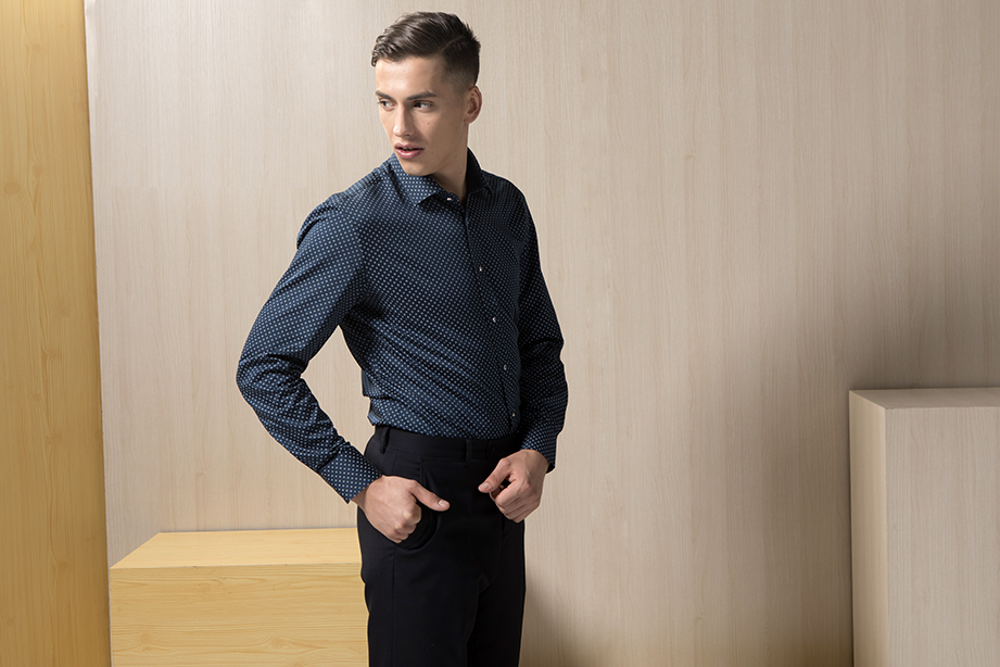 | 款名: | 深蓝色缎面印花纯棉时尚商务衬衫 | |||
