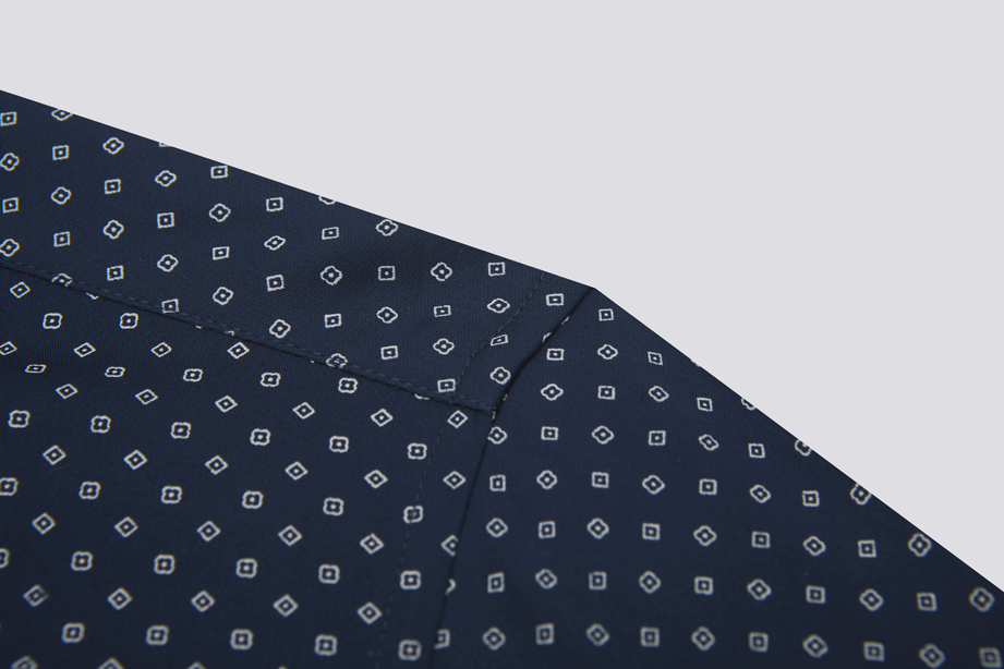 | 款名: | 深蓝色缎面印花纯棉时尚商务衬衫 | |||||