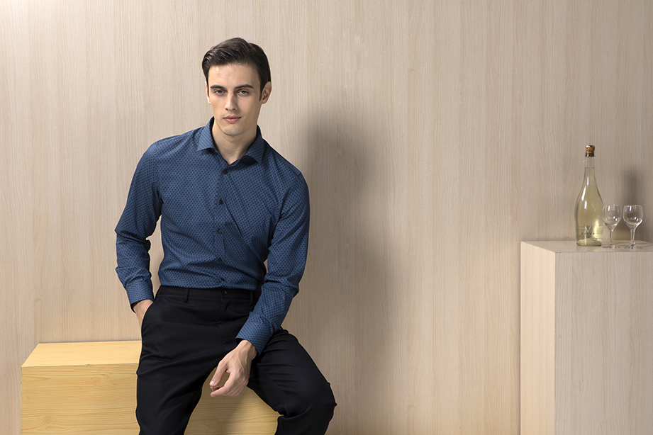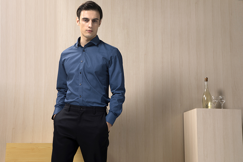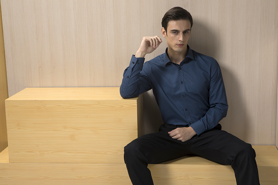 | 款名: | 靛蓝色几何印花纯棉时尚商务衬衫 | |||