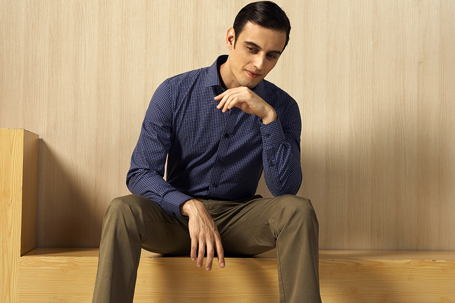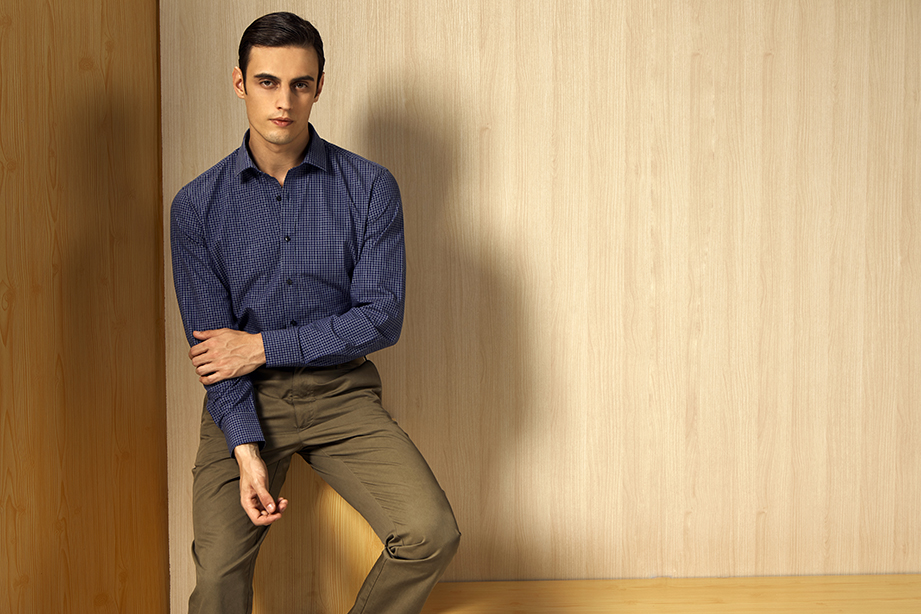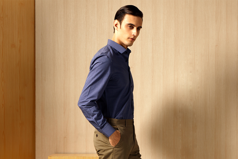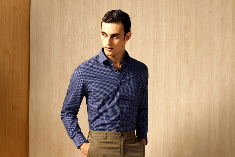 | 款名: | 暮蓝色暗纹小方格时尚休闲衬衫 | |||||