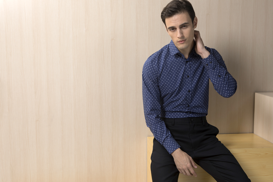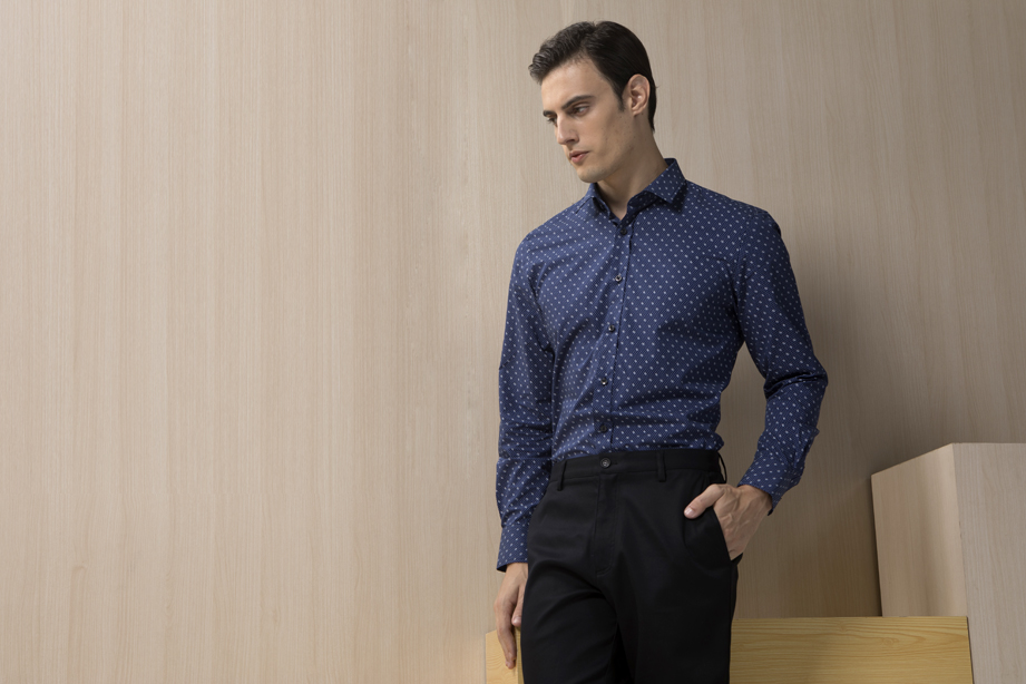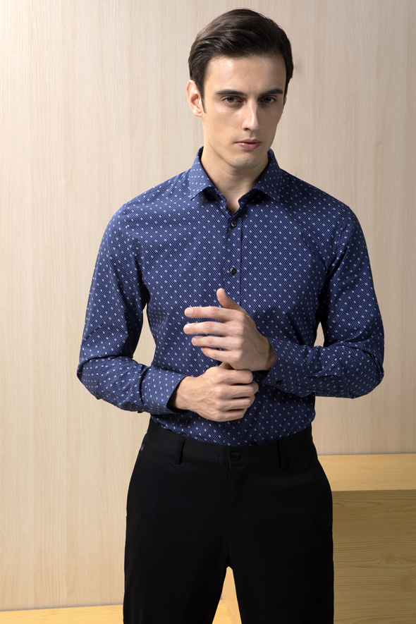 | 款名: | 深蓝色枝叶印花时尚休闲衬衫 | |||