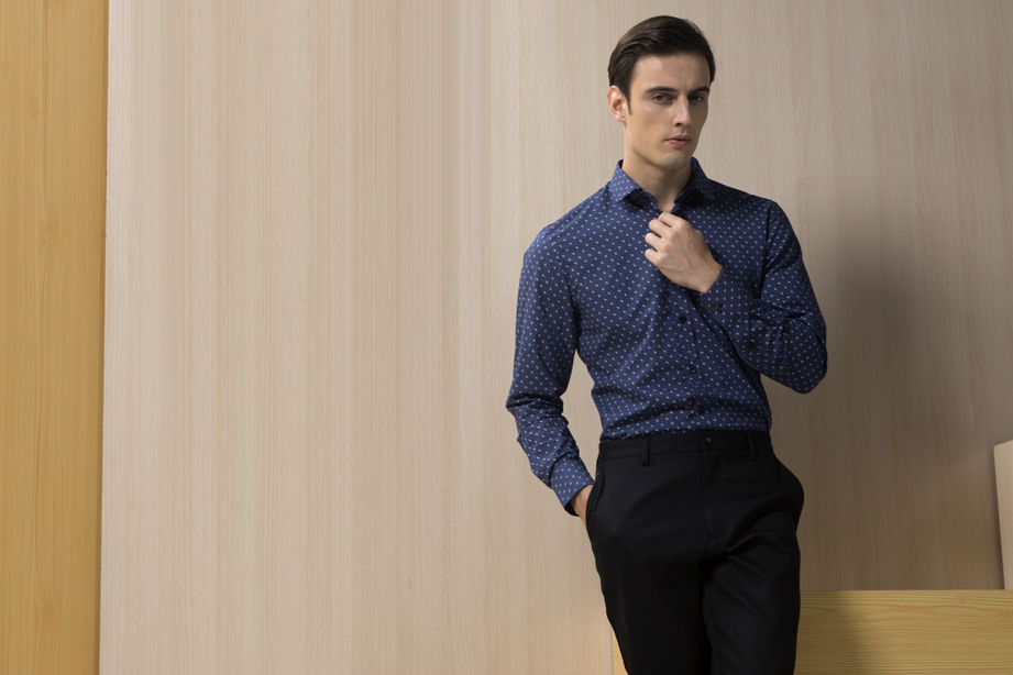 潮流小方领设计,年轻时尚,领口平整高密度车线;采用德国骏马内衬,更加力挺耐穿,多次洗涤仍然能保持原型。