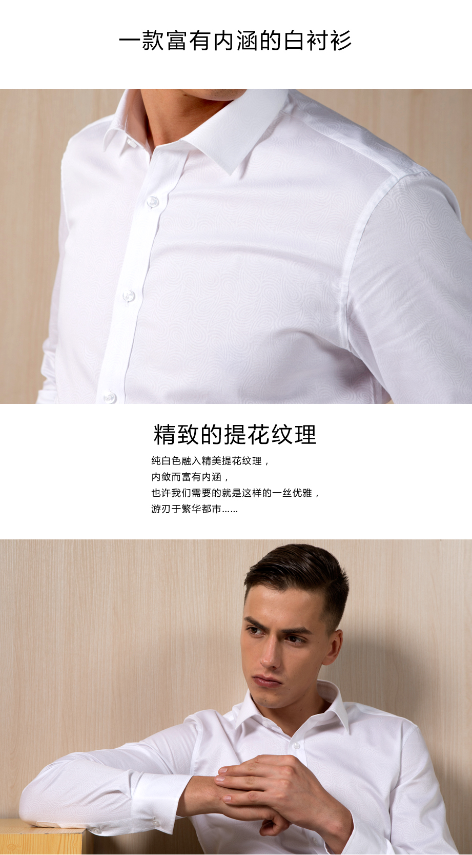 | 款名: | 白色纯棉提花时尚商务衬衫 | |||