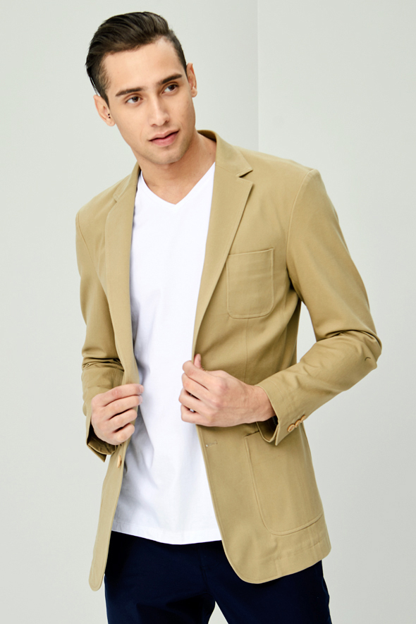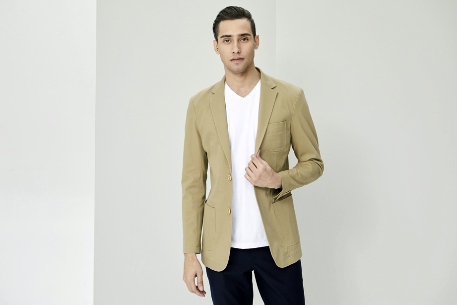 单排两粒纽扣,选用高品质果实扣,休闲风格浓郁。