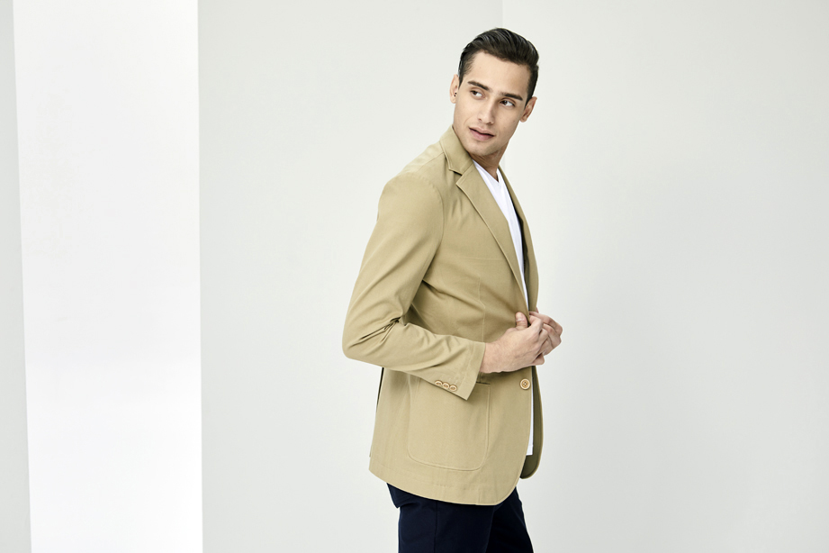 经典平驳领设计,衣襟自然贴体,前胸立体挺括。