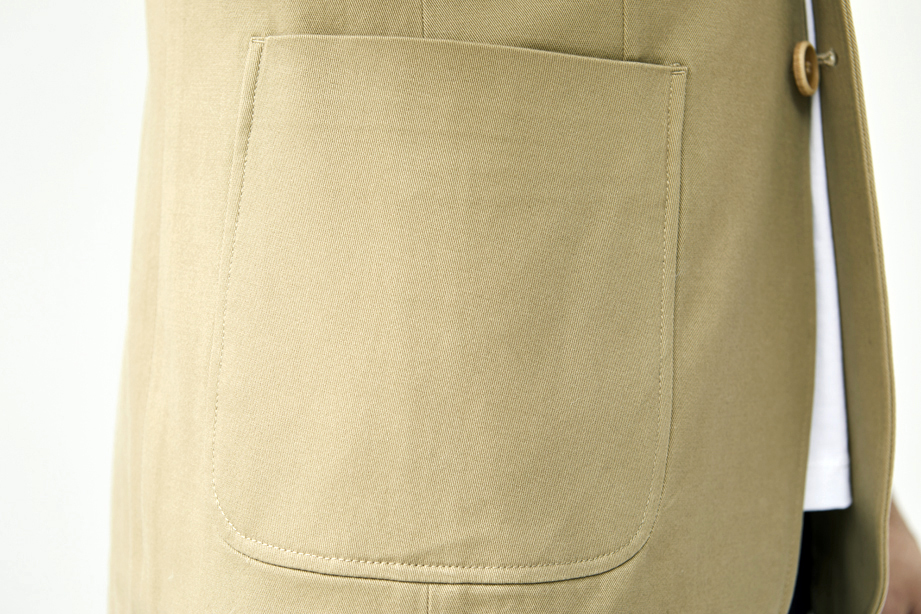 胸前和两侧采用明贴式圆角口袋,时尚休闲,自然随和。