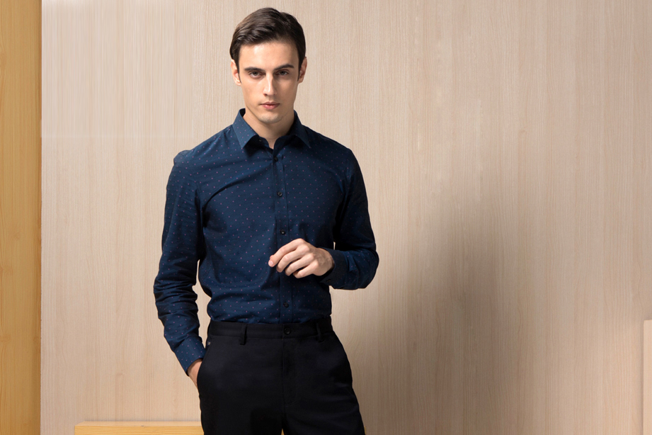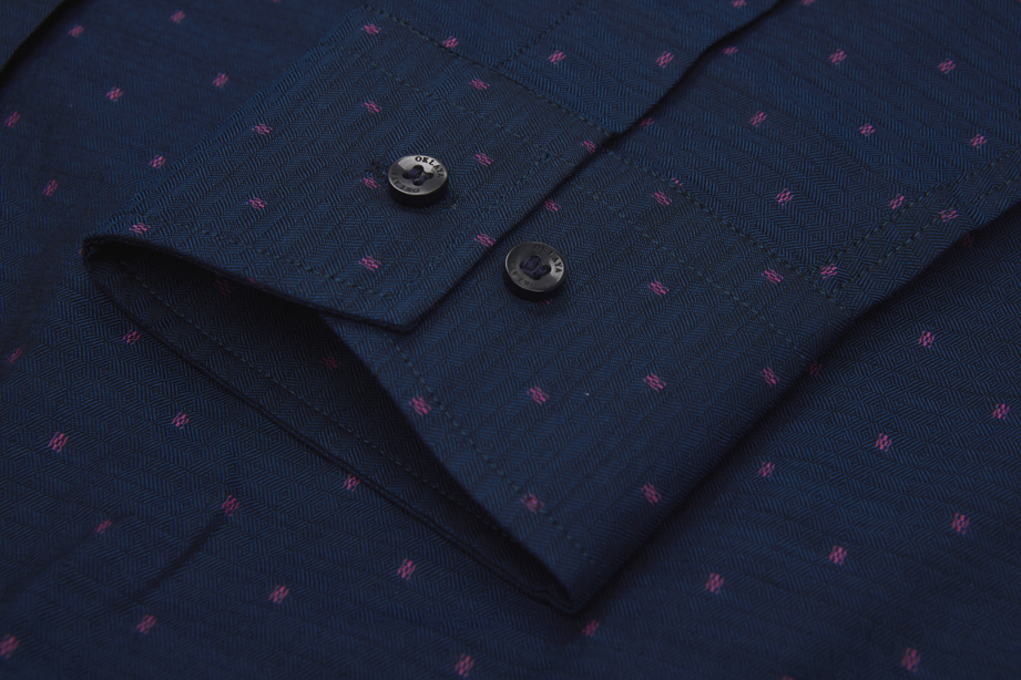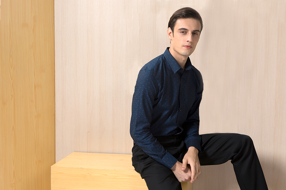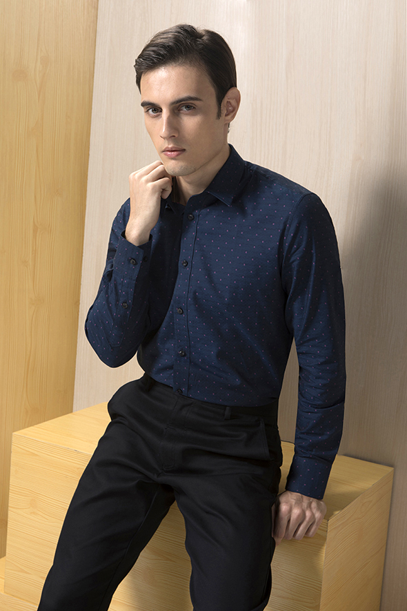 | 款名: | 深蓝色粉红点明暗提花时尚商务免烫衬衫 | |||