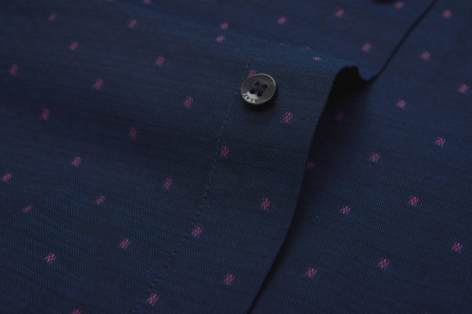 | 款名: | 深蓝色粉红点明暗提花时尚商务免烫衬衫 | |||||
