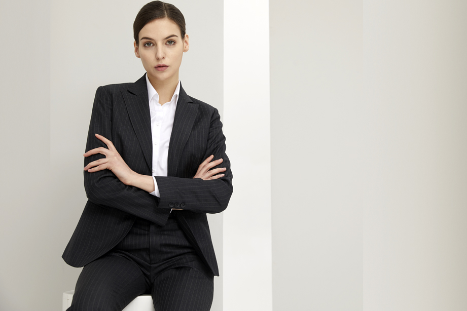 | 款名: | 深灰宽条纹羊毛混纺春秋商务枪驳头女西装 | |||