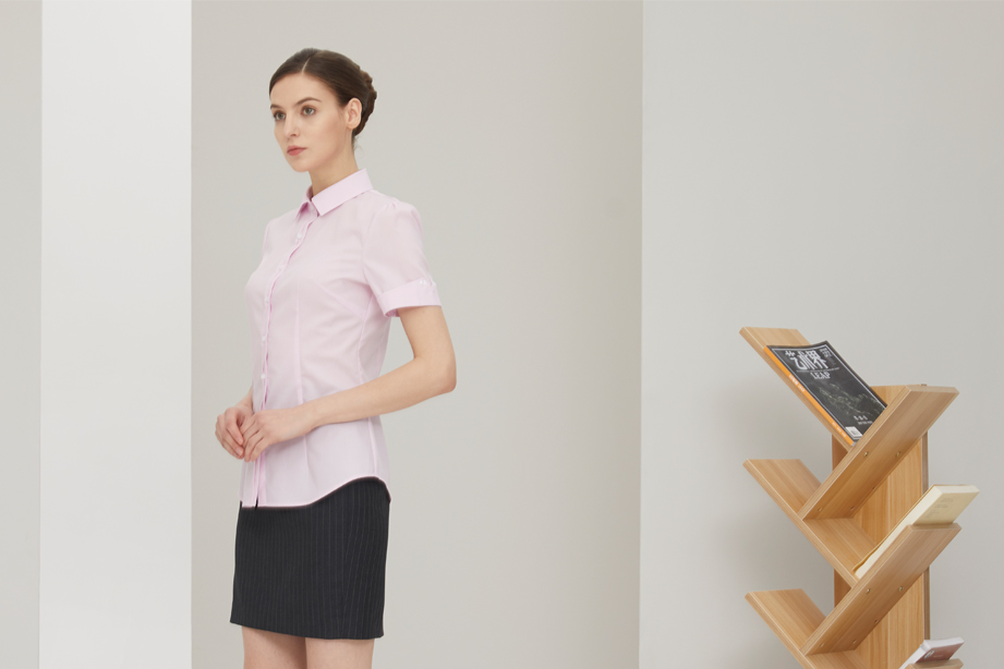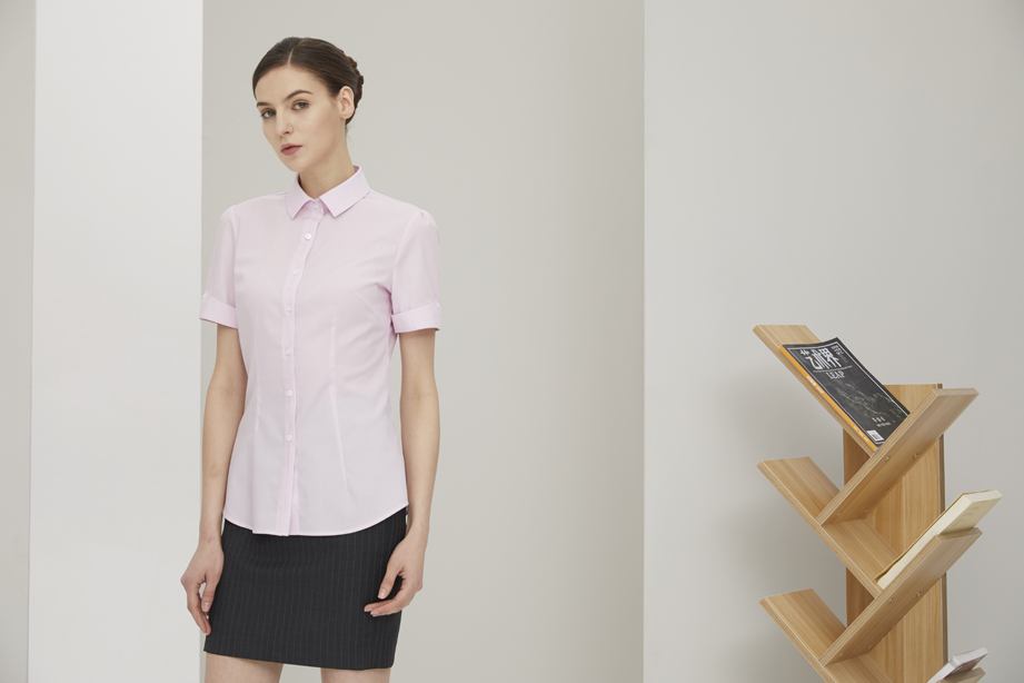| 款名: | 粉色纯棉经典小方领女短袖衬衫 | |||||