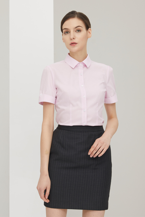 | 款名: | 粉色纯棉经典小方领女短袖衬衫 | |||
