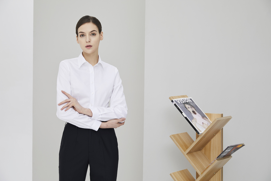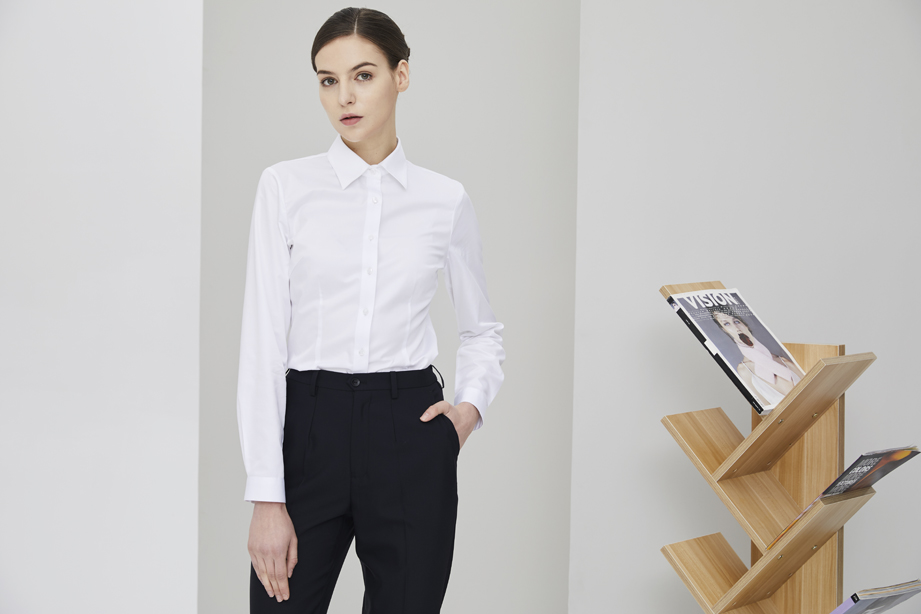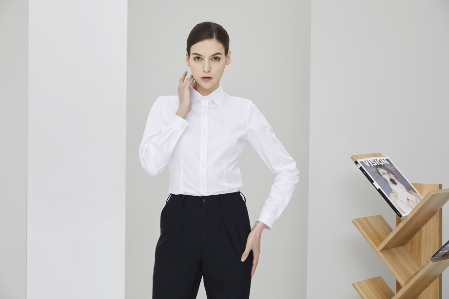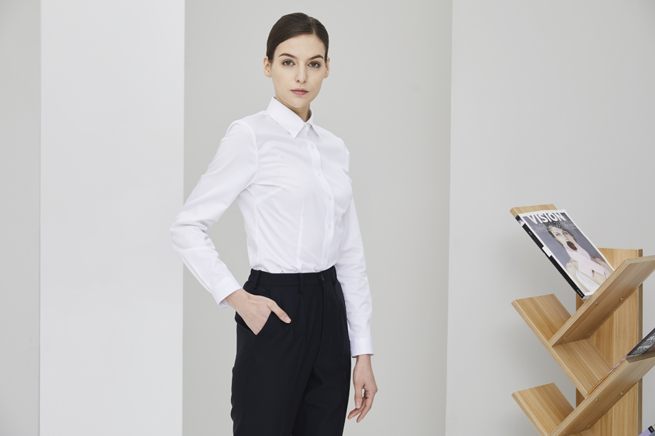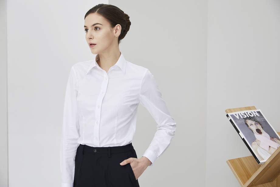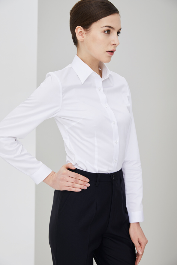 | 款名: | 白色纯棉贡缎经典尖领女长袖衬衫 | |||||
