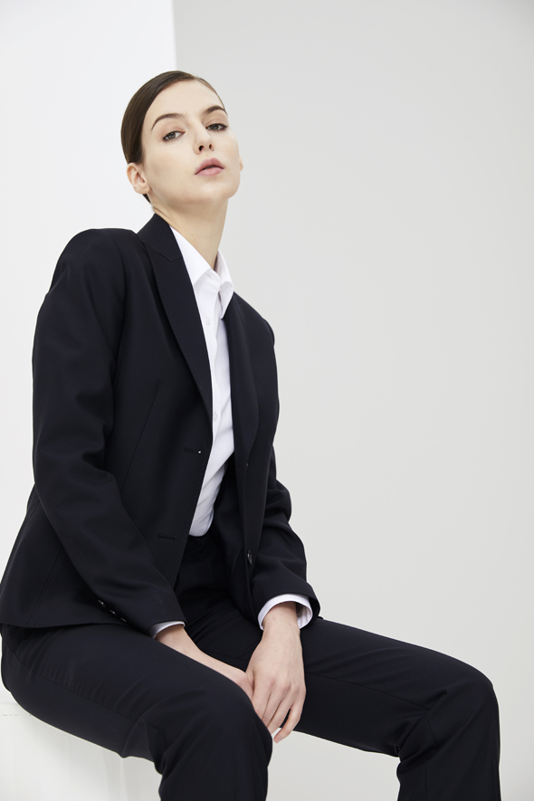 | 款名: | 深藏兰色羊毛戗驳领二粒扣春秋商务女西装 | |||