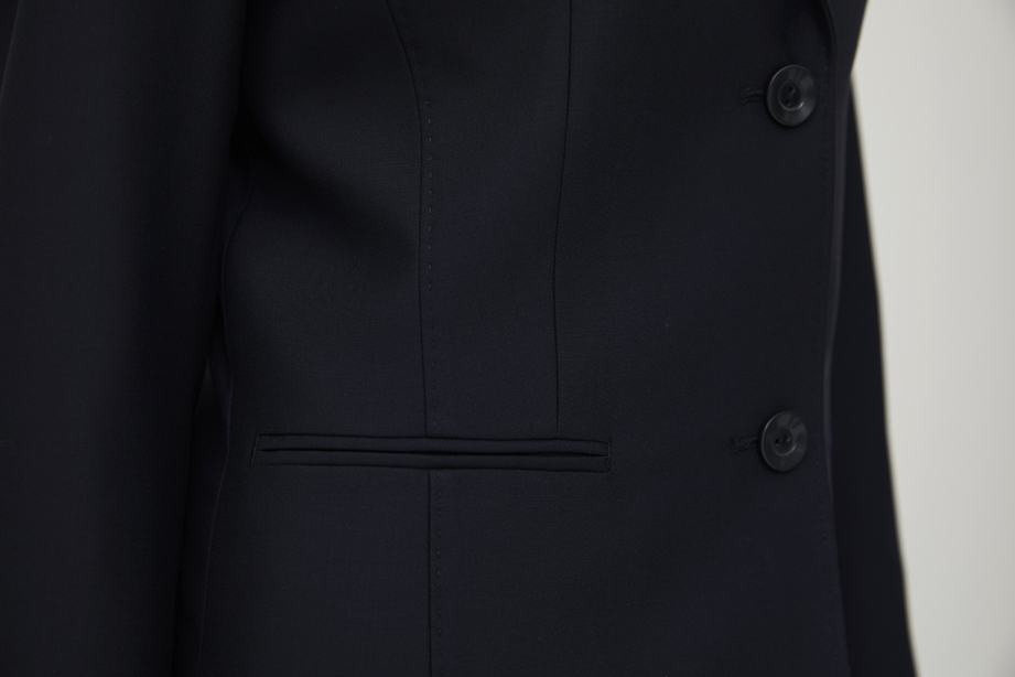 | 款名: | 深藏兰色羊毛戗驳领二粒扣春秋商务女西装 | |||||