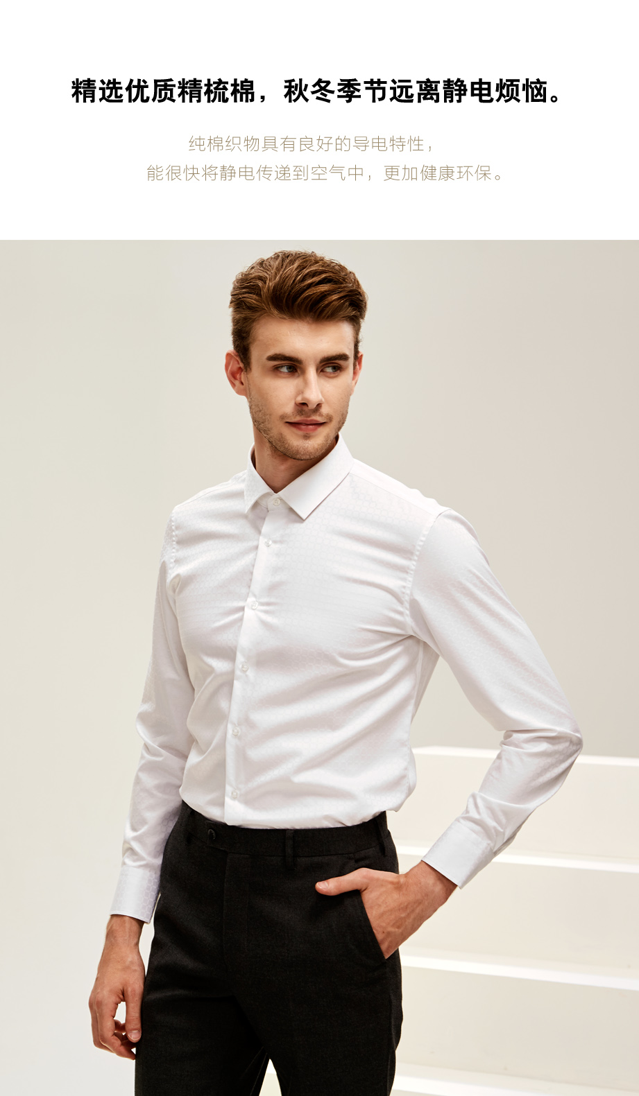 | 款名: | 白色纯棉暗格纹时尚商务衬衫 | |||