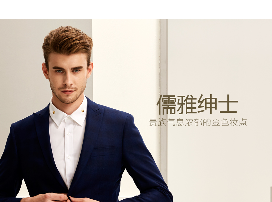精致金色纽扣妆点,高雅绅士风度: 采用德国骏马内衬,更加力挺耐穿,多次洗涤仍然能保持原型。
