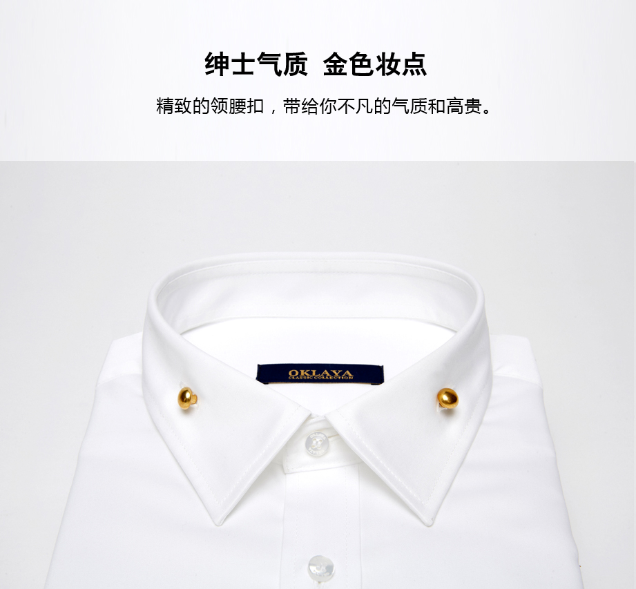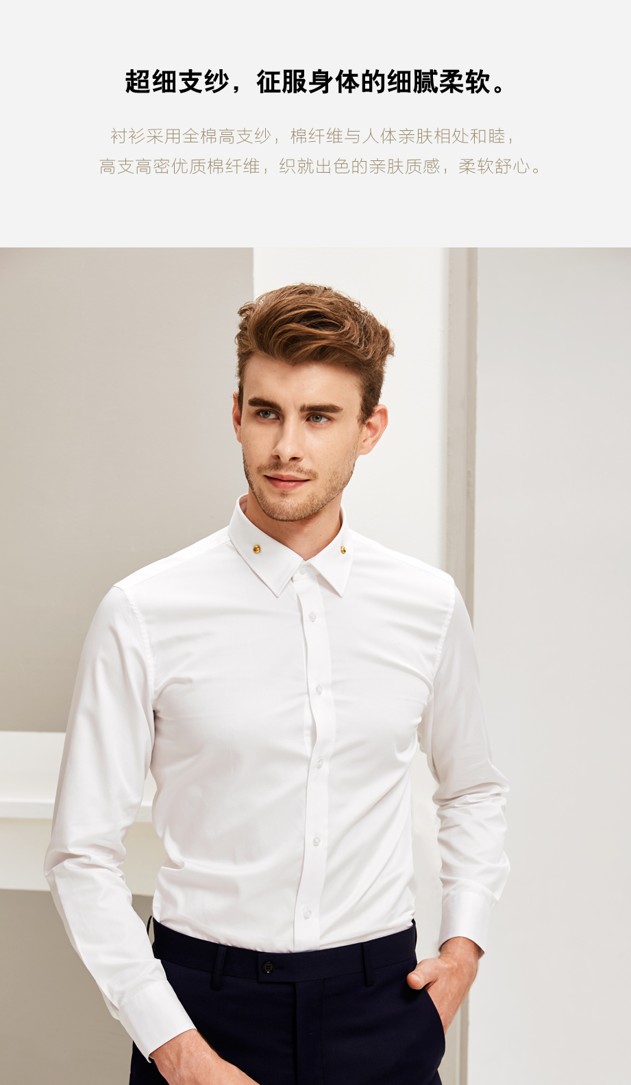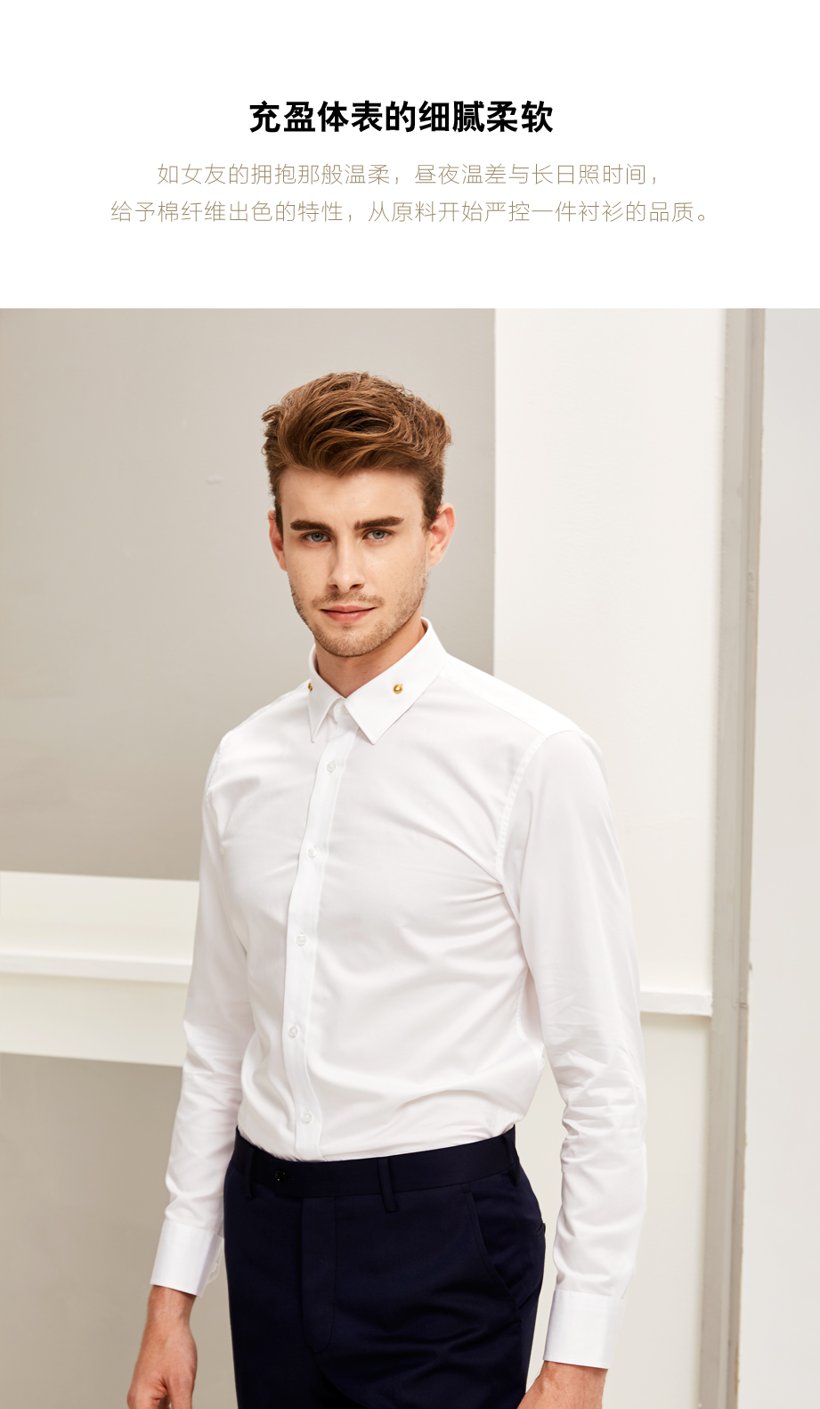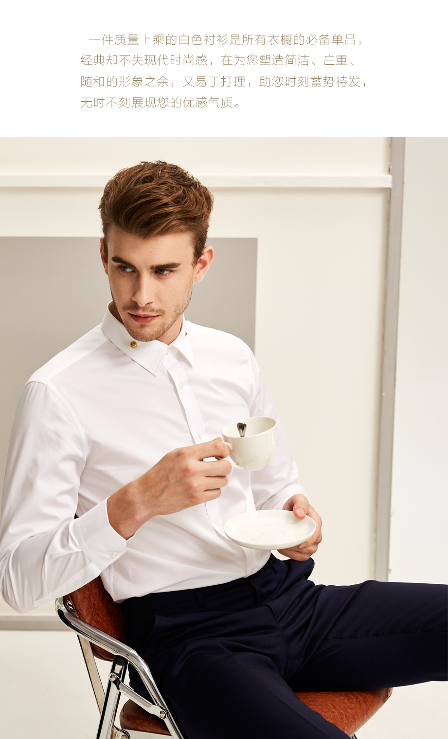 | 款名: | 白色纯棉贡缎领腰扣时尚商务衬衫 | |||||