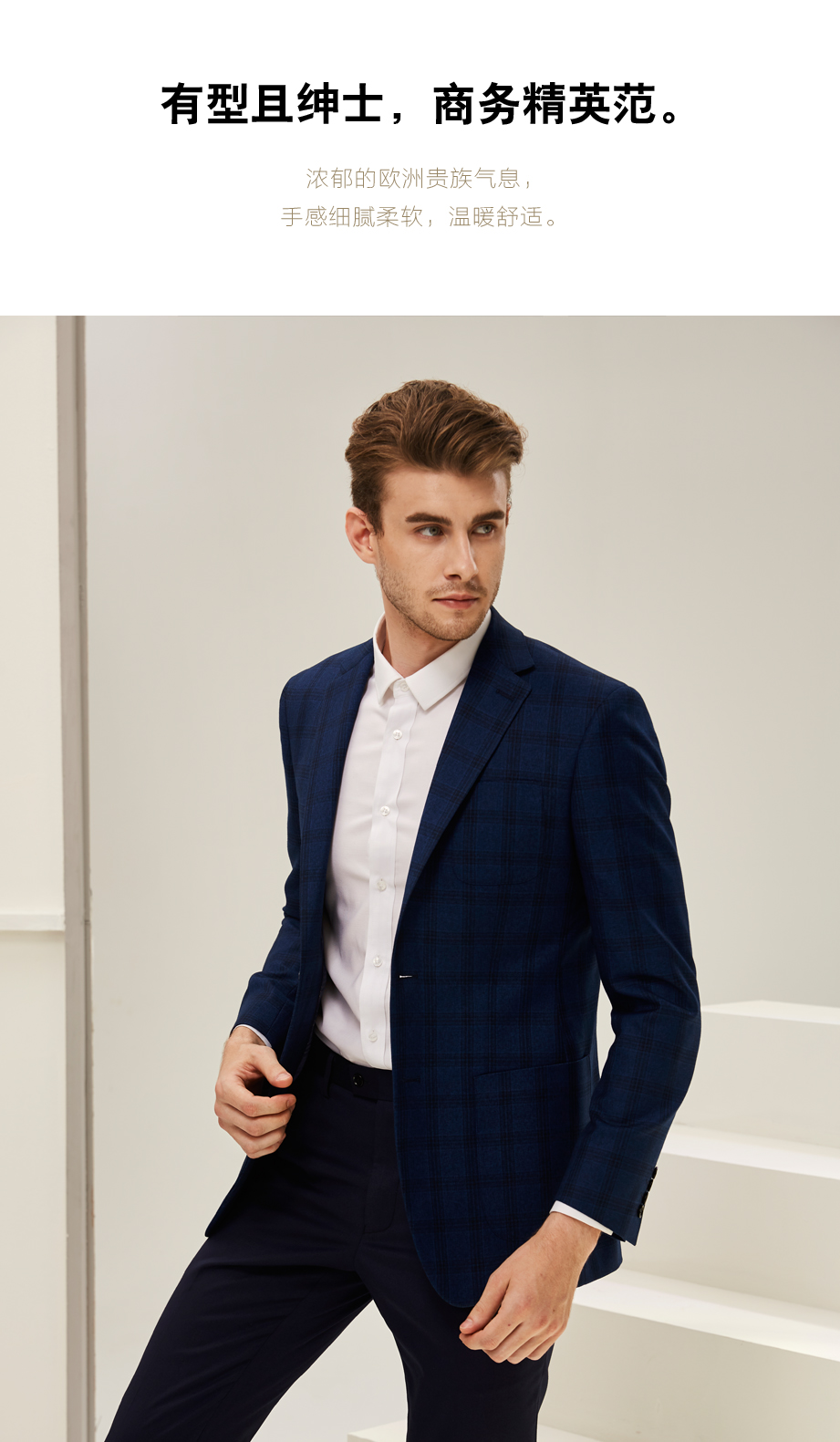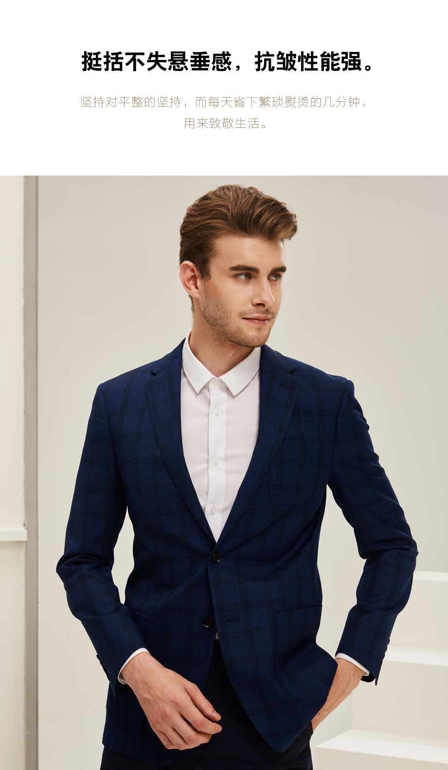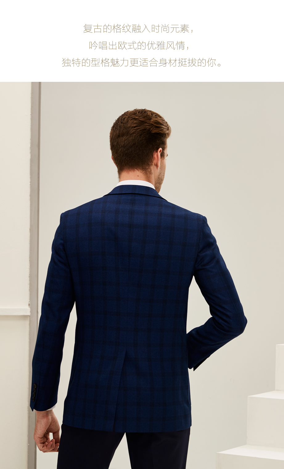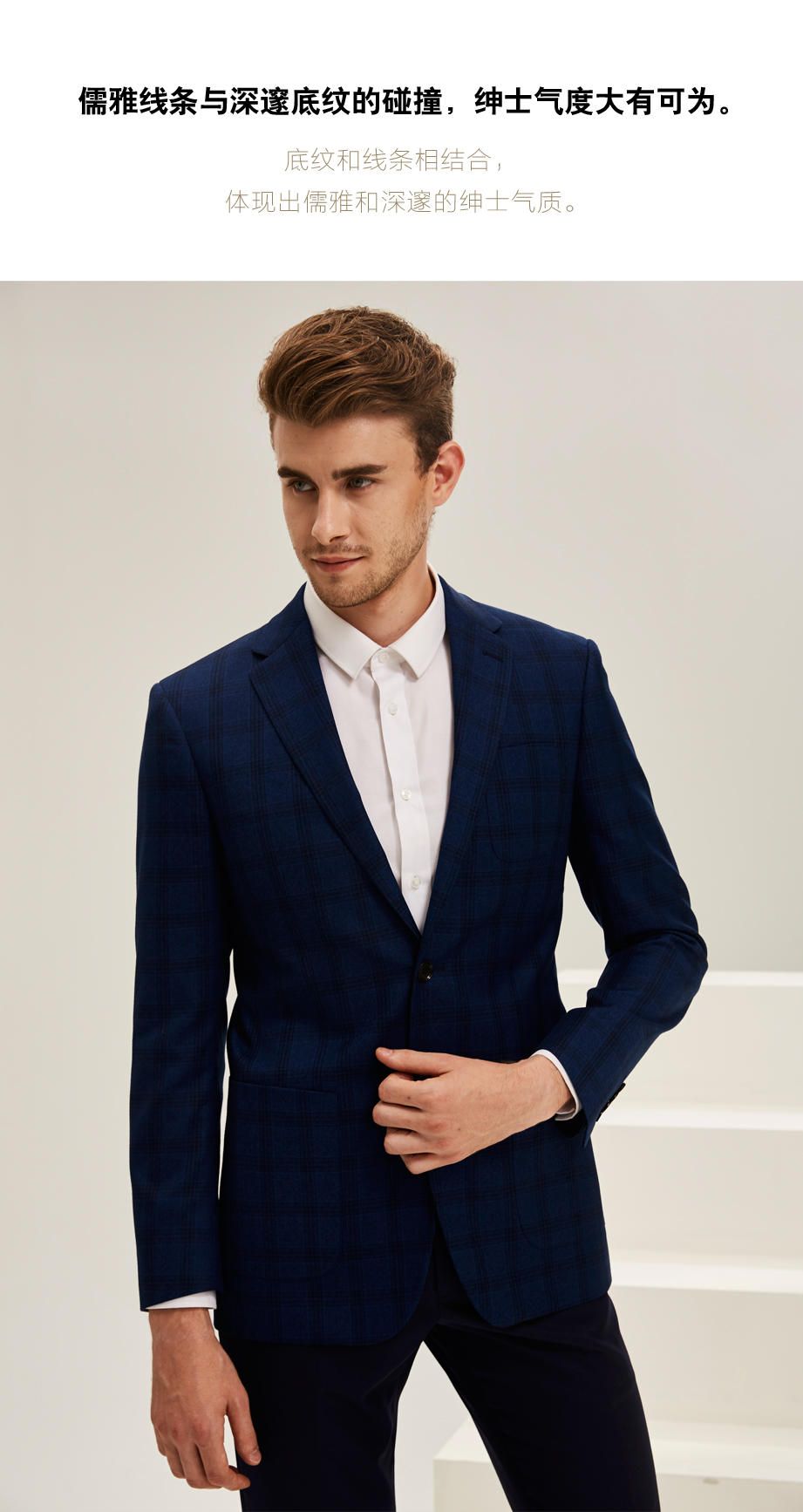| 款名: | 深蓝色英伦格纹易打理商务休闲单西 | |||
