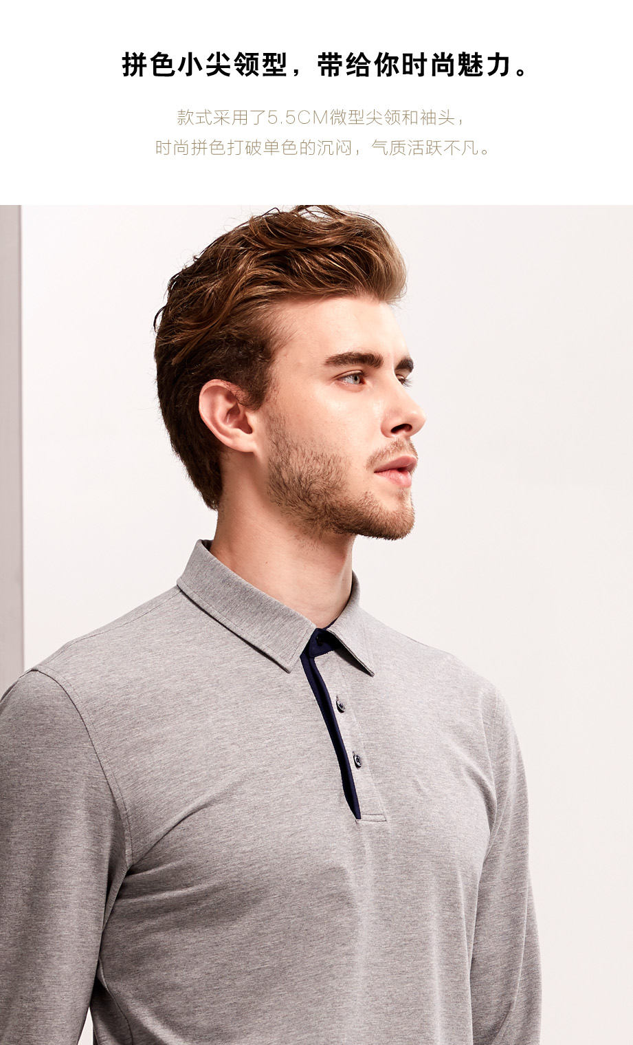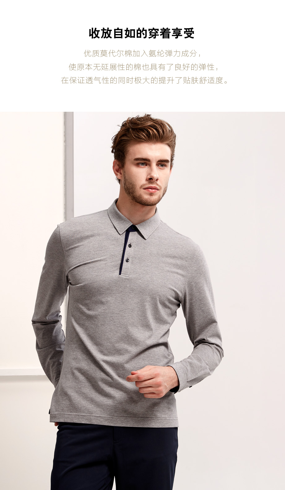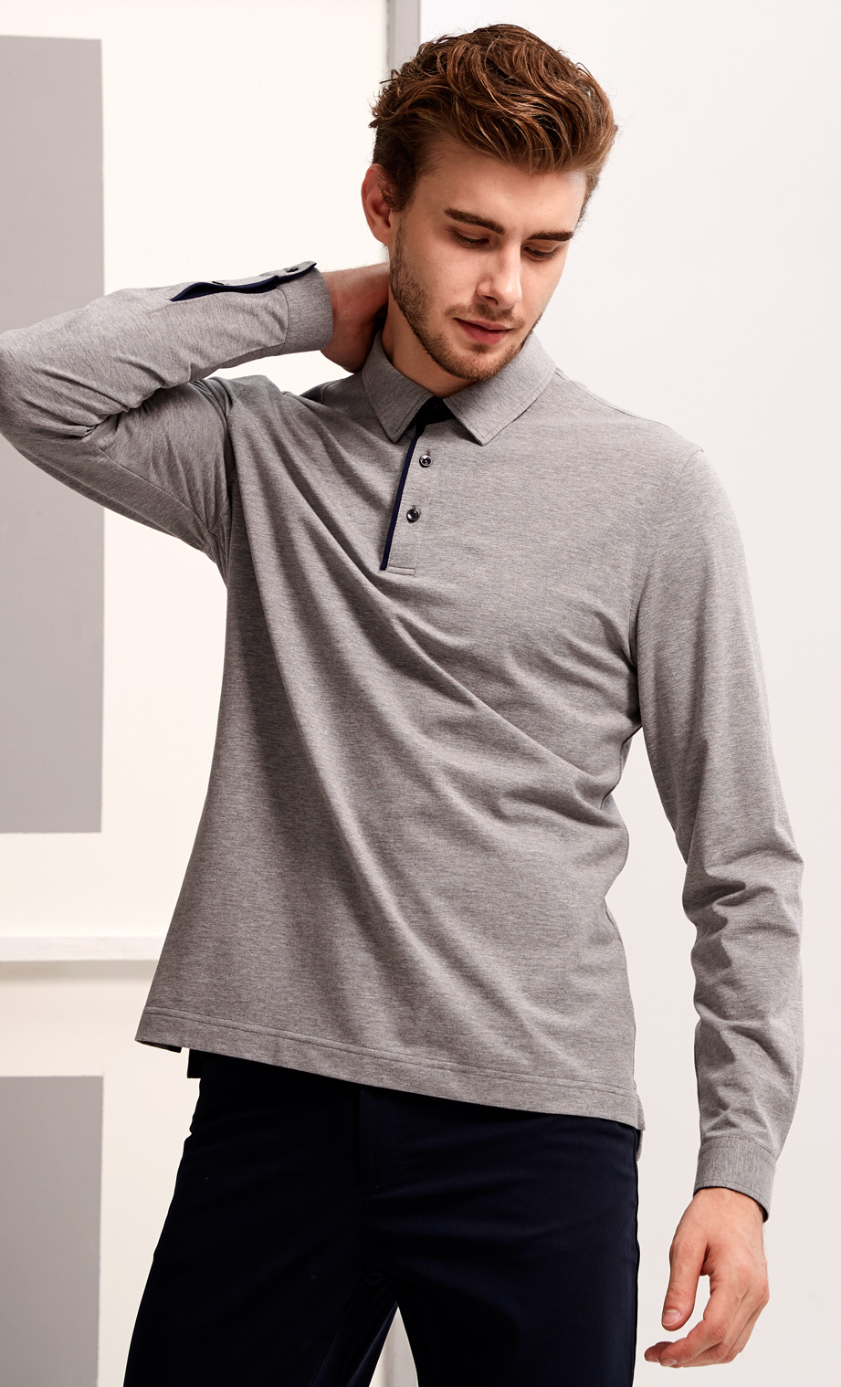 | 款名: | 浅灰色莫代尔棉长袖拼色休闲POLO | |||||