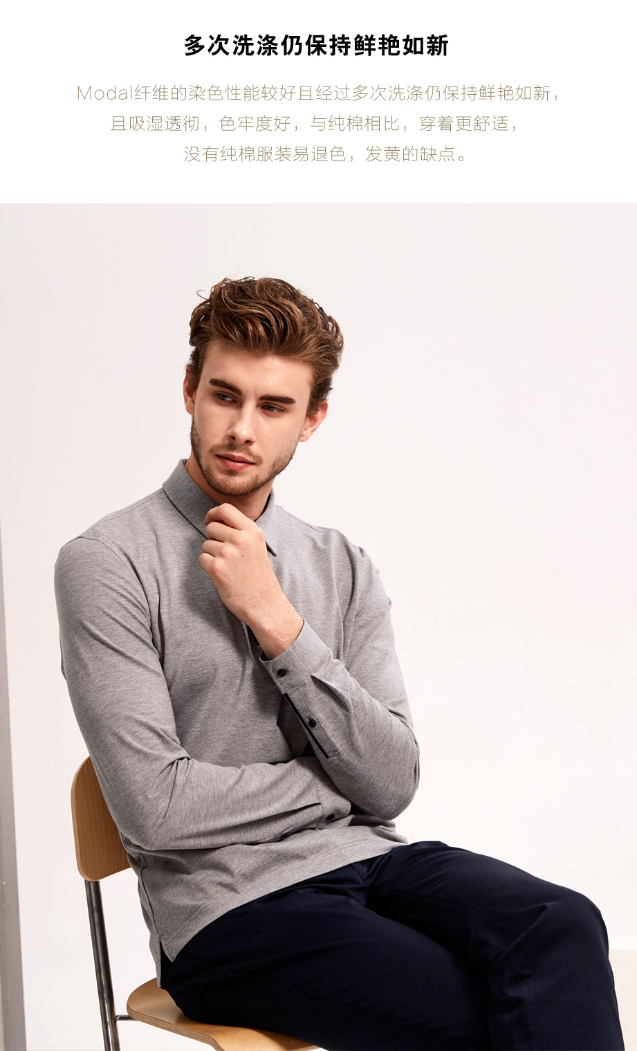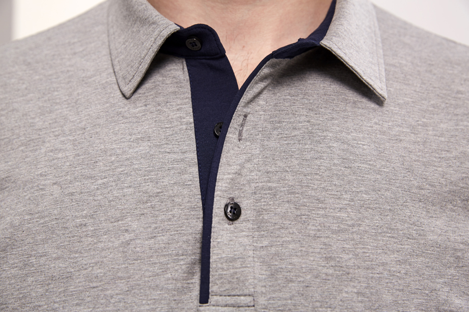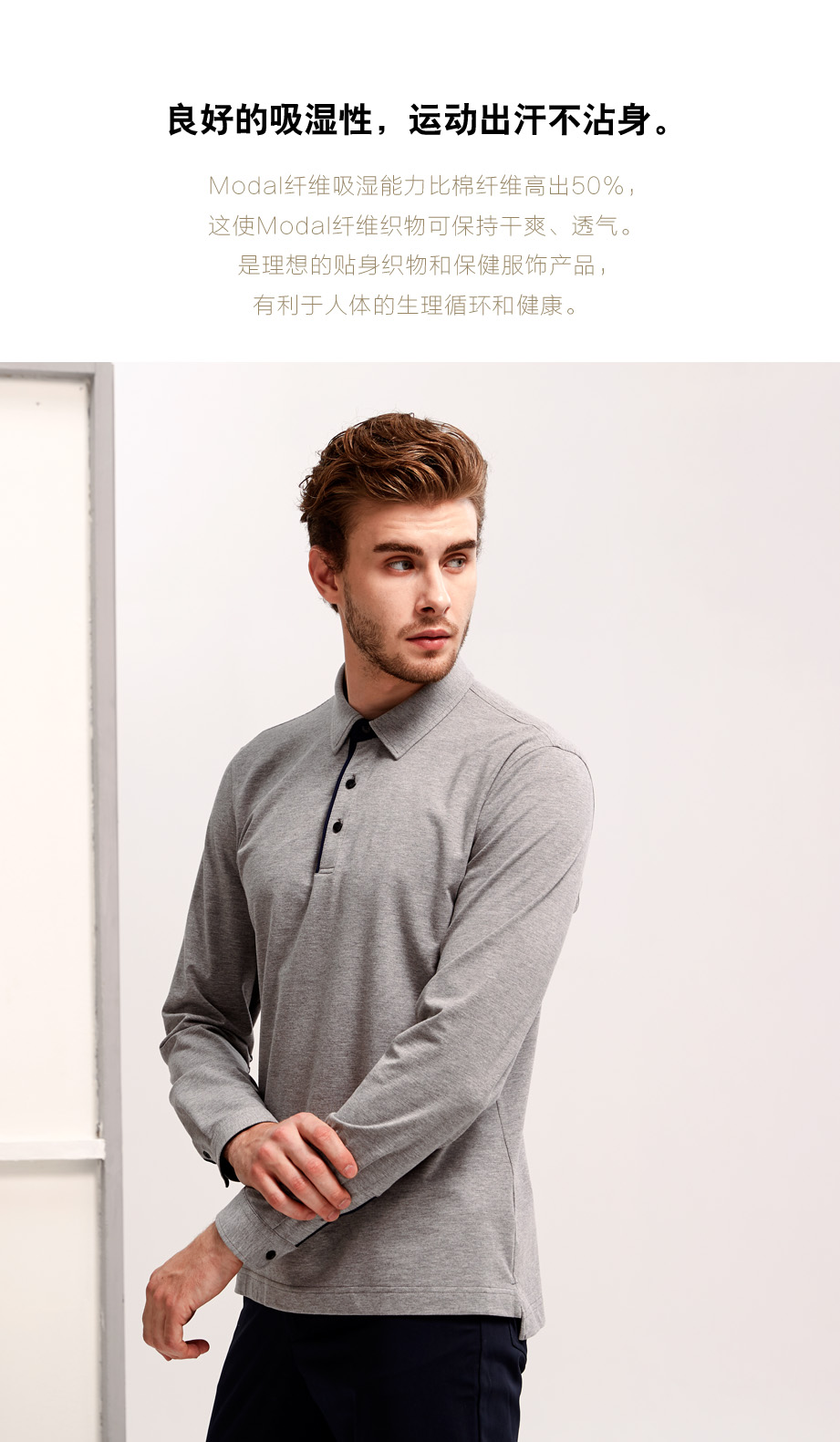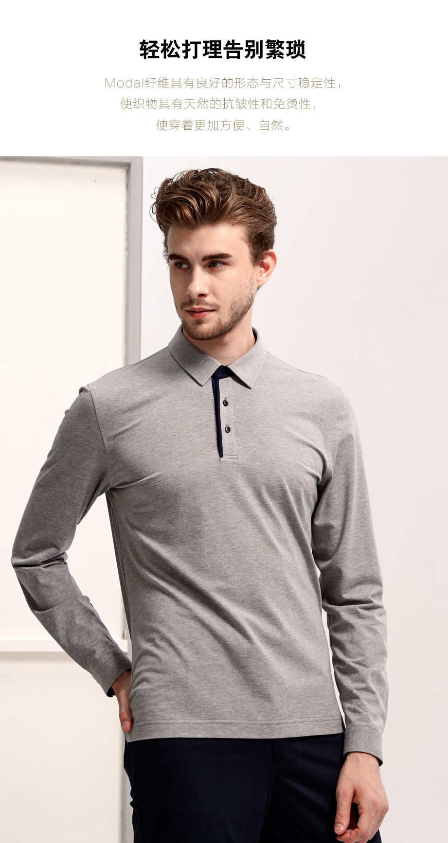 | 款名: | 浅灰色莫代尔棉长袖拼色休闲POLO | |||||