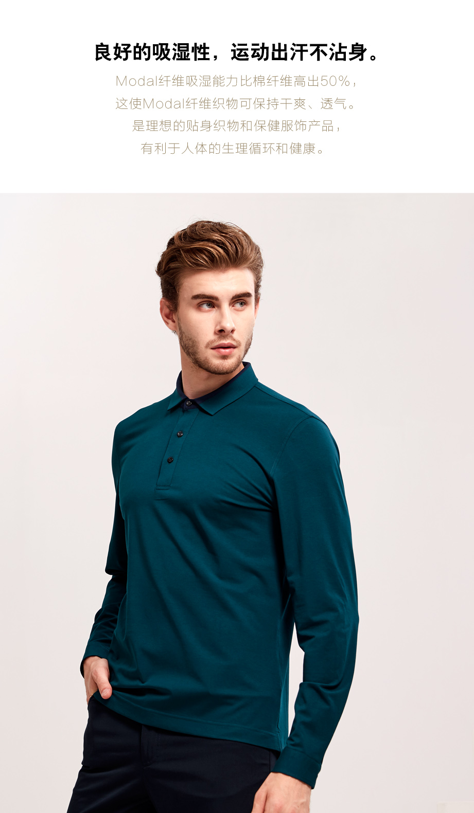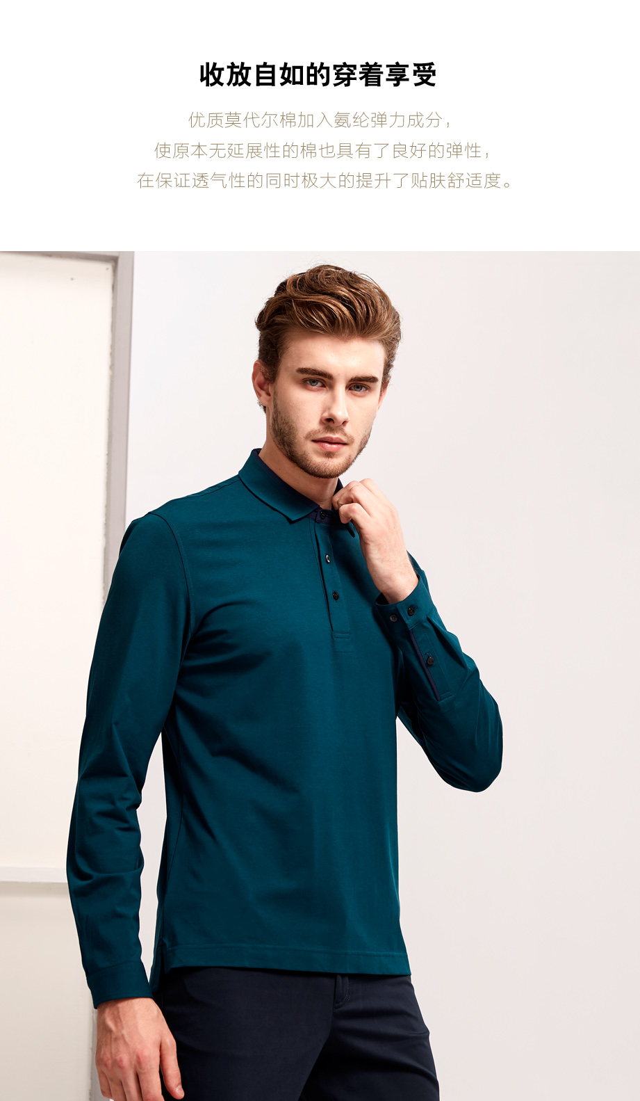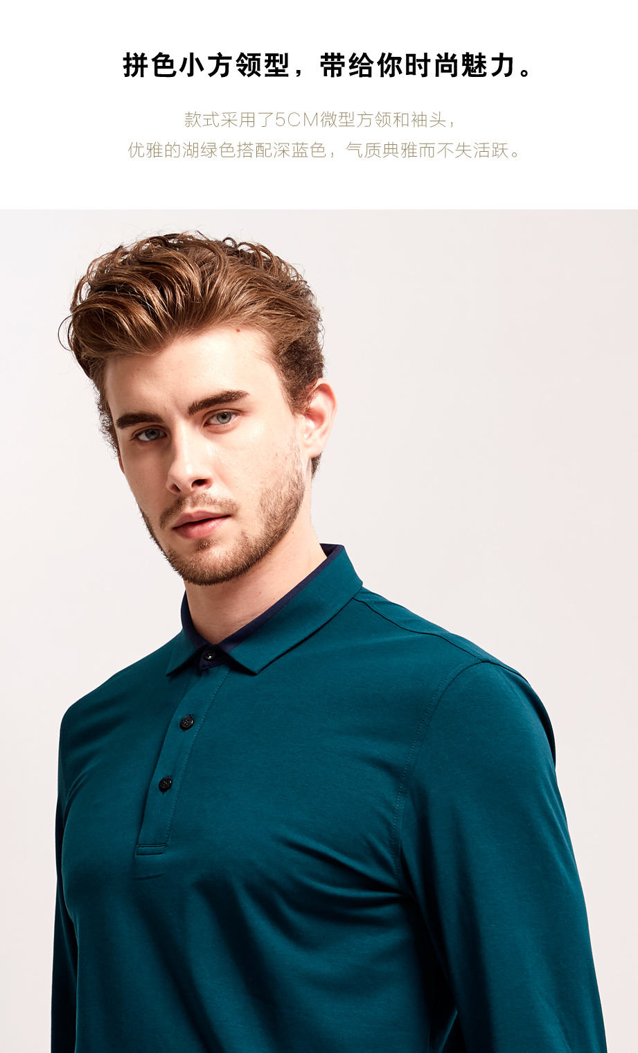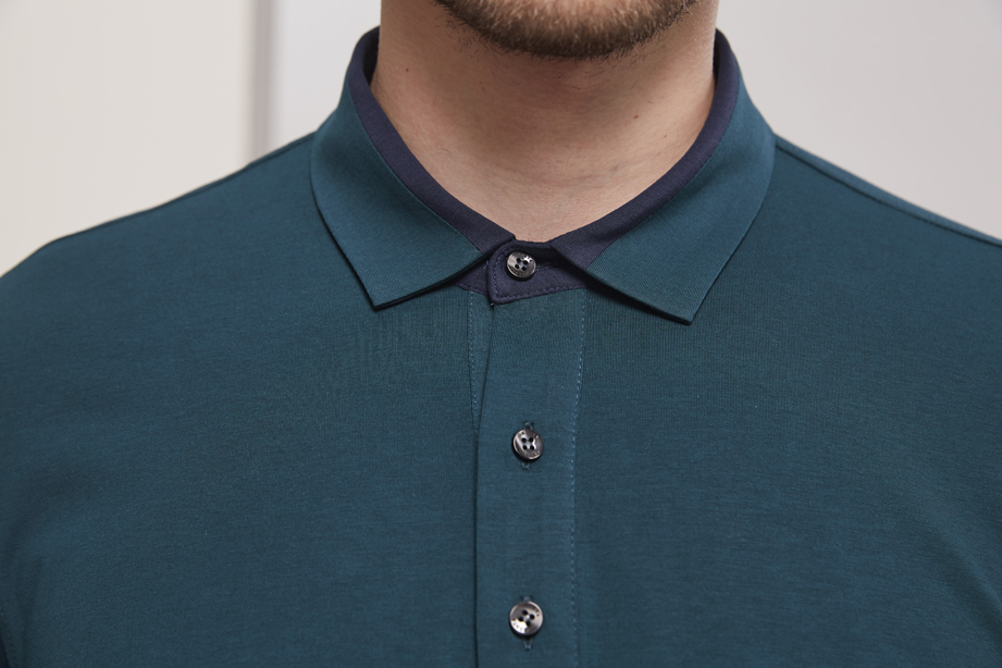 | 款名: | 深湖绿色莫代尔棉拼色领春秋长袖POLO | |||||