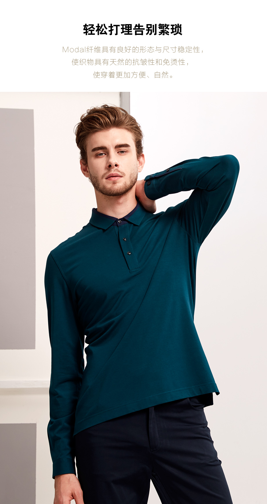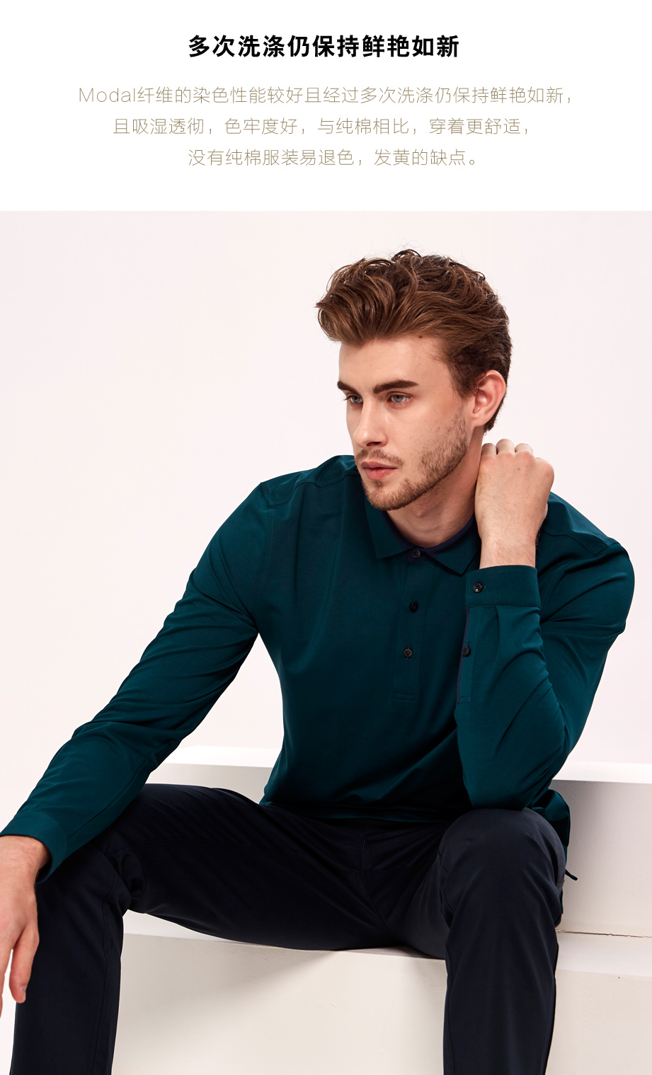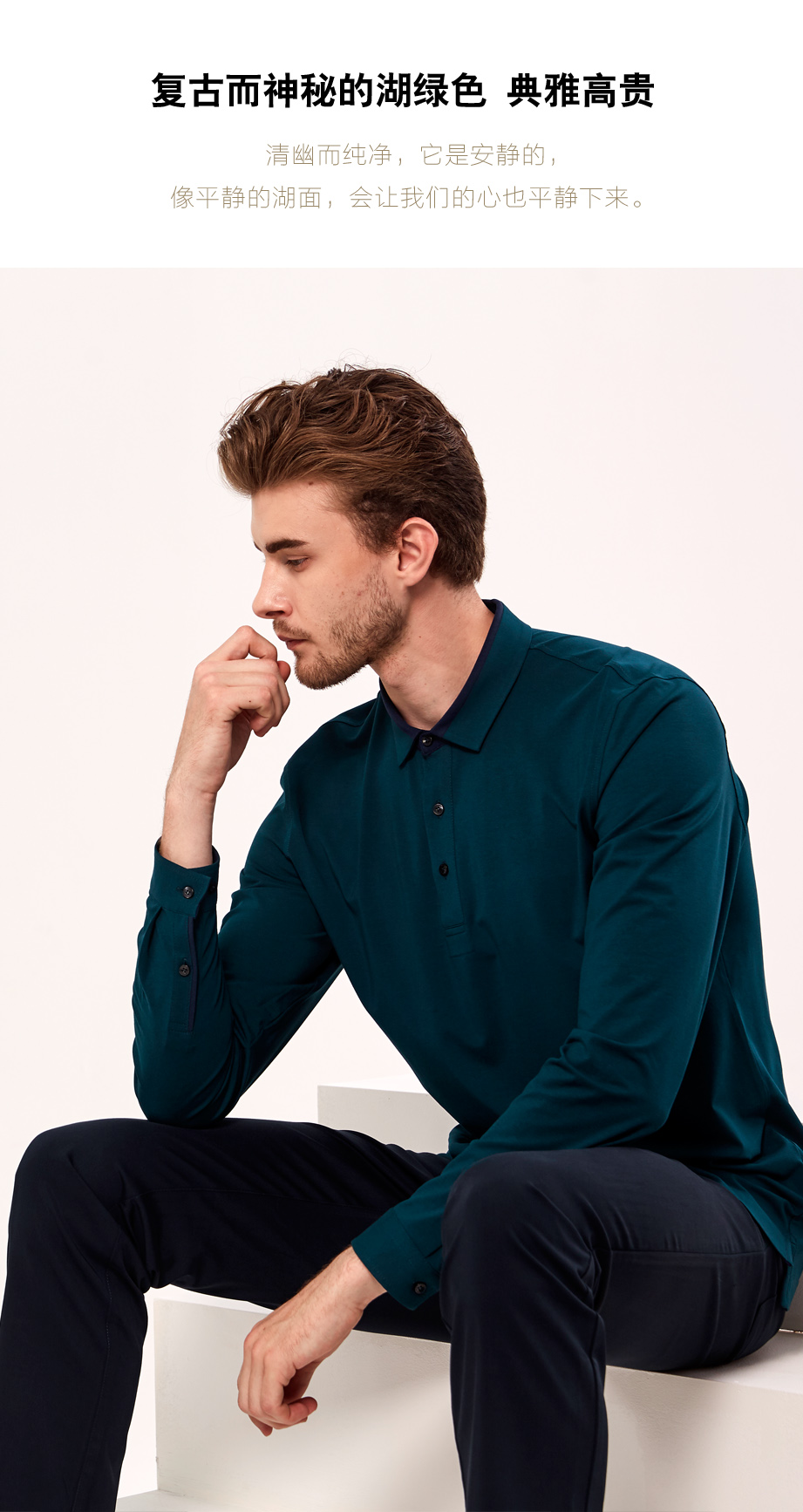 | 款名: | 深湖绿色莫代尔棉拼色领春秋长袖POLO | |||||